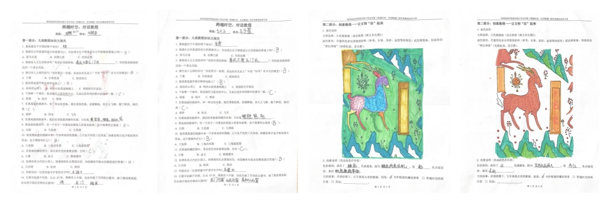 为深化学习效果,活动结束后,同学们认真完成学习单,用画笔描绘出灵动的九色鹿,用文字记录下震撼与感动。回到学校后,同学们进行了分享与展示,以艺术创作的方式传递敦煌文化价值。