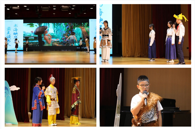 五(8)班同学带来《疯狂原始人2》英语配音,用鲜活的语调重现原始部落与现代文明的碰撞,传递亲情与勇气的力量;八(6)班、八(9)班则以《花木兰》为蓝本,用英语演绎“替父从军”的传奇,让经典故事在双语表达中焕发新活力。