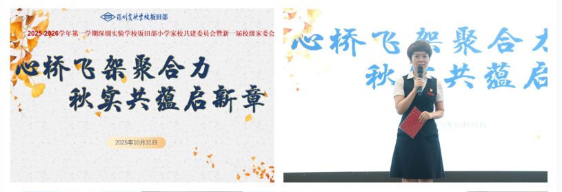 秋光织锦,桂香漫庭。10月31日下午,深圳实验学校坂田部小学报告厅内暖意融融,2025-2026学年第一学期家校共建委员会暨新一届校级家委会会议隆重举行。张楠校长等校领导与各级家委代表齐聚一堂,共绘家校共育新蓝图。