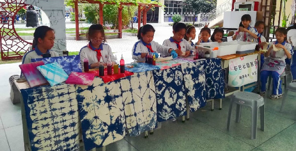 坂田部本次申报的是“剪纸、刺绣、扎染”项目。美术学科组在“传统手工技艺”方面优势明显,过硬的师资力量为项目的开展提供了有利保障。学科主任孙晓君是“袁氏”剪纸第六代传承人,深圳市剪纸协会理事,曾随“深圳市工艺美术大师”袁曼君到日本参加民间文化艺术交流,曾荣获第五届深圳市“创意十二月”现场剪纸大赛一等奖,曾参加深圳市“文博会”工艺美术作品展和剪纸技艺现场展演等活动。“刺绣”项目负责人陈露老师日常用心钻研有关刺绣的技法和纹样的设计,所带领的“绣外慧中”社团做出了很多富有童趣的优秀作品。“扎染”项目负责人邓佳每年寒暑假回贵州老家,利用家乡资源,近距离学习和传承民间“扎染、蜡染”技艺。