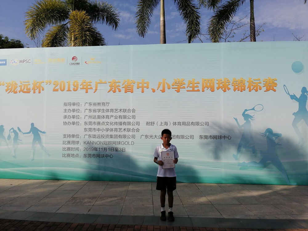 吴天皓在今年的比赛中获得全国青少年网球积分排名系列赛——中信银行2019年青少年网球巡回赛总决赛U12男子组季军;2019年粤港澳大湾区青少年网球U系列赛“珠海站”取得了U12男子单打和双打的双料冠军。