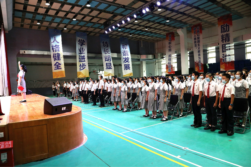 伴随着悠扬的音乐,冯校长与团员代表、少先队员代表走上讲台。冯校长与全体师生一起回顾了举国上下共克时艰、团结抗疫的场景,重温了在全国抗击新冠肺炎疫情表彰大会上习近平总书记的重要讲话精神。