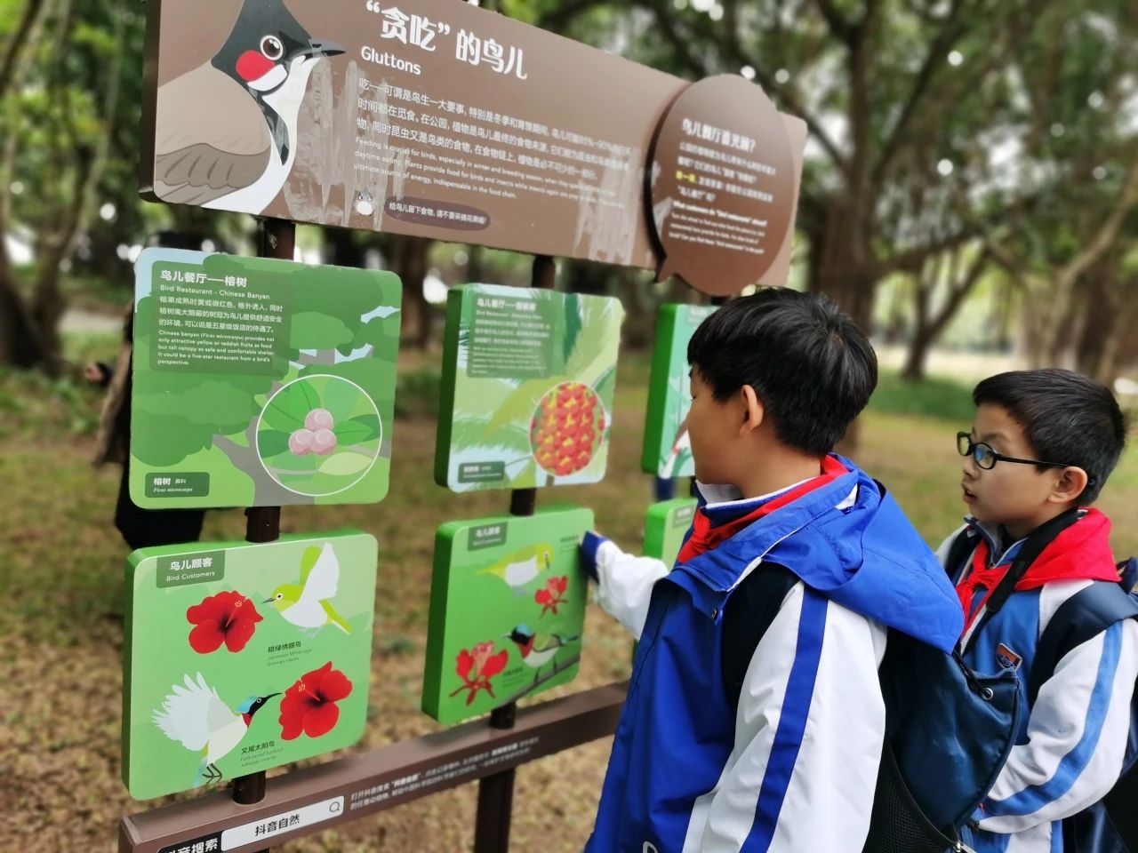 抬眼入林,林鸟婉转啁啾。色彩斑斓的鸟儿时而跳跃枝头,时而林间漫步。“老师你看,那里有一只!”同学们眼睛睁得大大的,捕捉着树林间的可爱与灵动,生怕错过任何一个精彩瞬间。欢声笑语在林间回荡,人与鸟共同绘就了一幅和谐生动的画面。