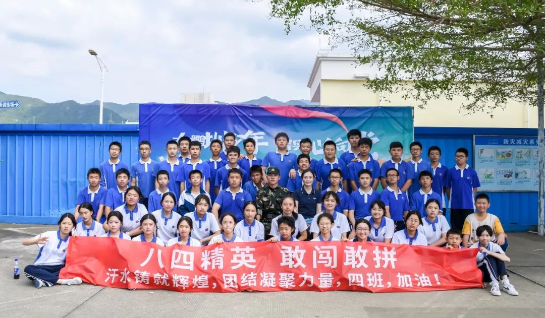 7日上午师生准时出发,一个小时后,顺利抵达大鹏基地。稍作整顿后,同学们换上统一的迷彩服参加了开营仪式。当天下午,在教官的带领下,七年级同学们开始了严格的军姿训练,每项训练都精细扎实,每项训练都磨砺着同学们的意志力。八年级则开展了系列拓展活动,以培植团队合作精神为目标,激发学生挑战自我的潜能,培养团队精神和沟通能力,促进班集体凝聚力的提升。