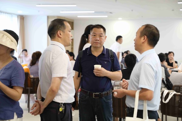 接着,考察团一行在教师沙龙做短暂休息。夏育华书记、集团和坂田校区行政干部与嘉宾们交流参观体会。嘉宾们对坂田校区展现的良好精神风貌赞不绝口,对“深圳实验学校师生应有努力成为中华民族脊梁的追求”的价值观深感震撼。