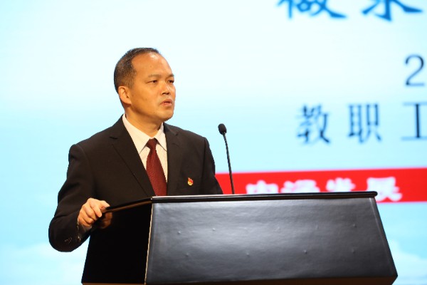 随后,坂田校区党总支委员、工会主席、办公室主任胡联辉同志发言。胡联辉同志号召老师们做四项投资:一、投资本事——“有扎实学识”,这就是“底气和底蕴”;二、投资情操——“有道德情操”,这就是“底线”;三、投资健康,强健的身体,是一个人应对生活的底气;四、投资家庭,经营小家,心有大家,奉献国家。