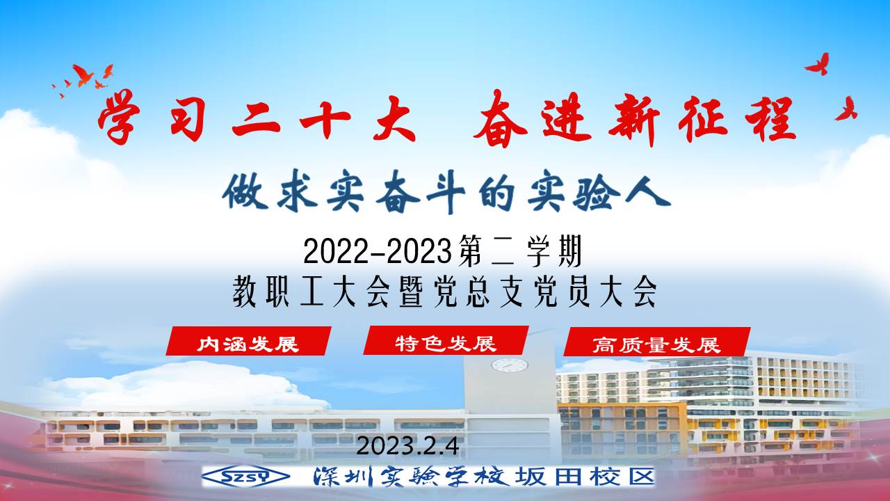 新春伊始,万象更新。今年是贯彻党的二十大精神的开局之年,是实施“十四五”规划承前启后的关键一年,是为全面建设社会主义现代化国家奠定基础的重要一年。为了让全体教职工、党员深入学习领会习近平总书记关于教育的重要论述,充分理解和认识“为党育人、为国育才”的初心使命,2023年2月4日,深圳实验学校坂田校区召开了新学期第一次全体教职工大会暨党总支党员大会。