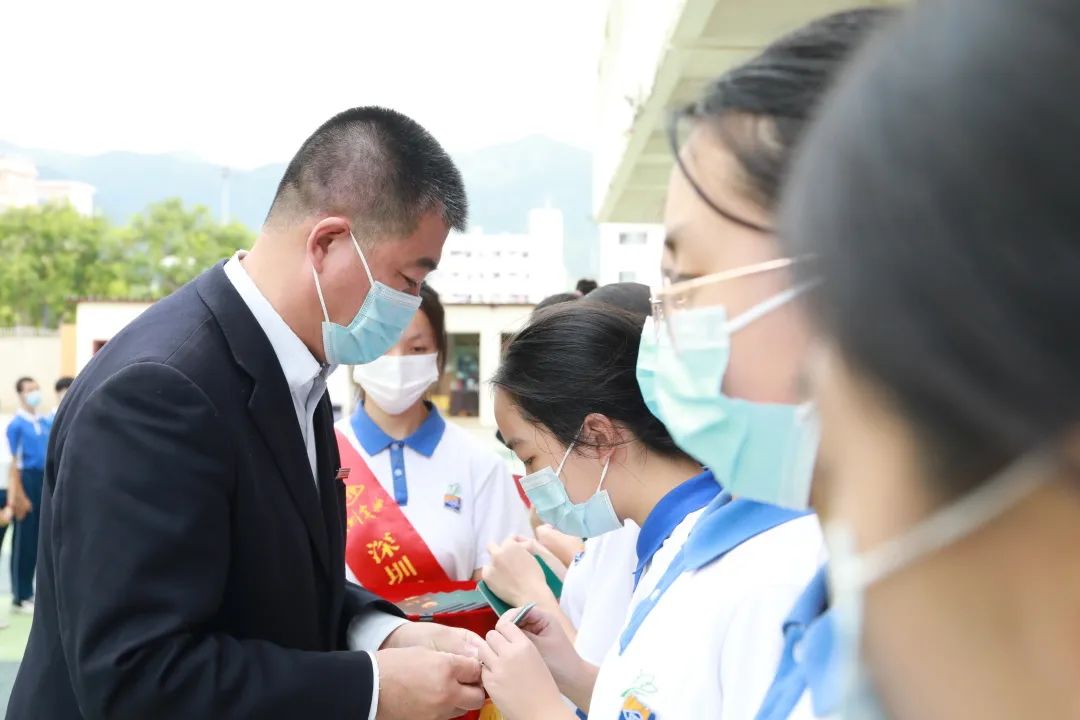 “火线入团”是学校传统而有意义的活动之一。仪式中,深圳实验学校副校长、坂田校区执行校长王喜峰校长和坂田校区初中部赵晓主任为新团员颁发团员证和团徽。“强国有我,请党放心!”新团员们,必将用实际行动,践行青春誓言。