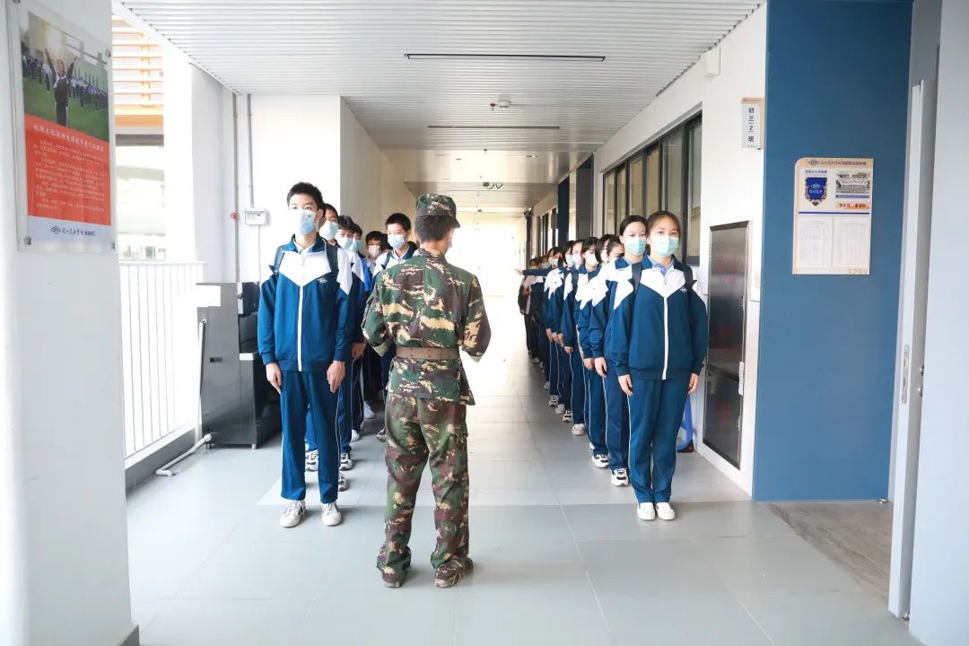 看!九年级学子们整装待发,用饱满的热情和昂扬的精神面貌迎接教官。