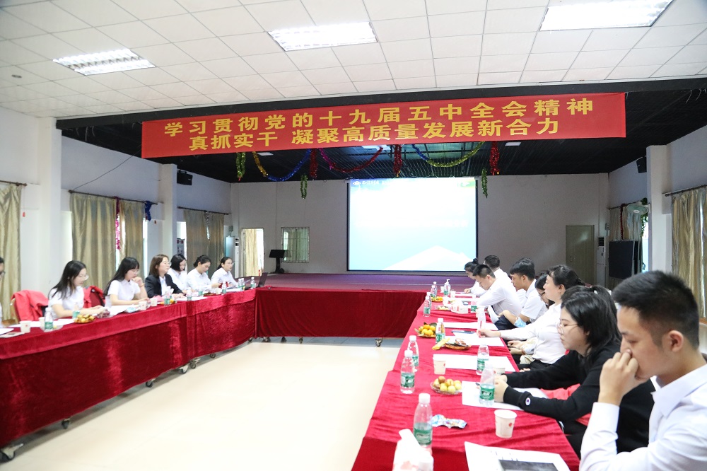 会议伊始,分别由衔接段支部书记谷琰及初中段代理支部书记赵晓领读、领学党的十九届五中全会精神。以图文并茂的形式,围绕党的十九届五中全会“推动高质量发展”这一主题,用14个关键词及一组图为老师们深入浅出地介绍了党的十九届五中全会公报要点。“奋进新时代、开启新征程,以推动高质量发展为主题,把新发展理念贯穿发展全过程和各领域,在危机中育先机、于变局中开新局,努力实现更高质量、更有效率、更加公平、更可持续、更为安全的发展,我们就一定能赢得优势、赢得主动、赢得未来。”