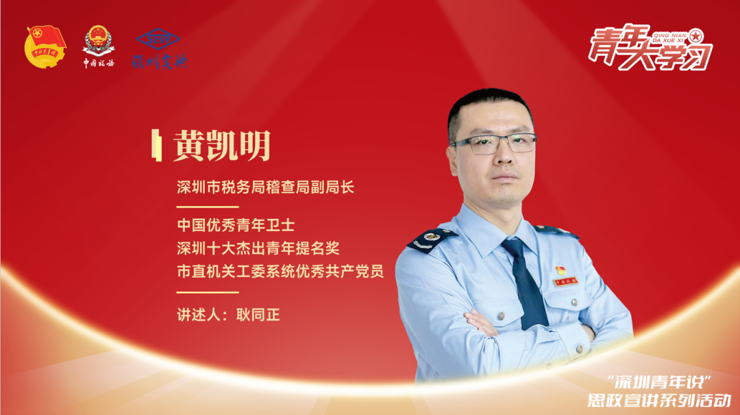 第三个青春故事的主角的黄凯明。黄凯明是国家税务总局深圳市税务局稽查局副局长、三级调研员,也是2021深圳十大杰出青年提名奖获得者。