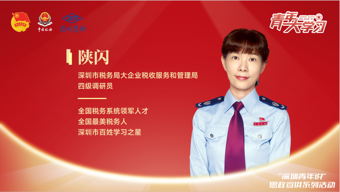 第二位宣讲人,全国税务系统领军人才、全国最美税务人陕闪分享了她学习奋斗、成就自己的青春故事:“6年的驻港部队生涯在锤炼责任感和使命感的同时,磨练了我永不言弃的意志,孕育了我不服输的精神和韧劲”;一段段大跨度的经历对她的灵魂、认识、作风和工作能力有了全方位的推动和正面影响。