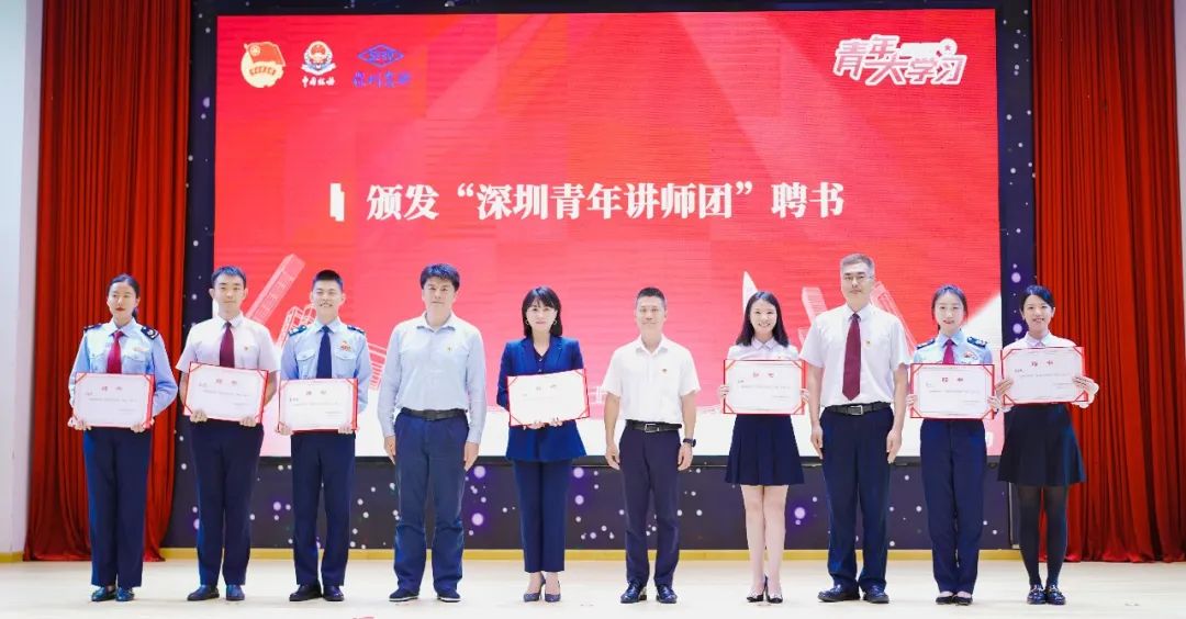 思政课走进校园活动让深圳模范典型成为青年学子的“身边人”“身边事”,持续传递新时代深圳青年榜样力量,鼓舞带动更多青年学先锋、做模范,激励青年学子勇担历史使命,矢志奋进走在前,砥砺青春向未来。随后,与会领导为“深圳青年讲师团”讲师颁发聘书,并为“青马工程”深圳实验学校社会实践团和“青马工程”深圳税务青年理论学习团授旗。