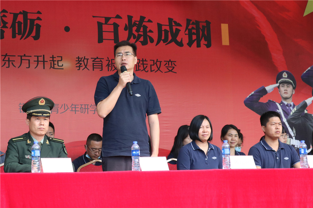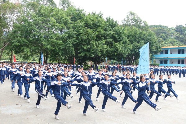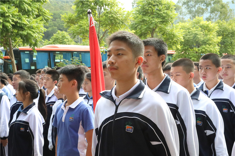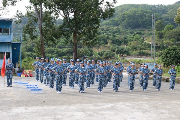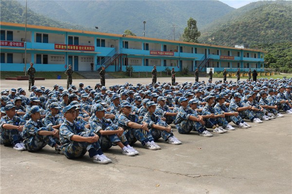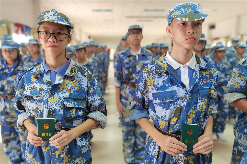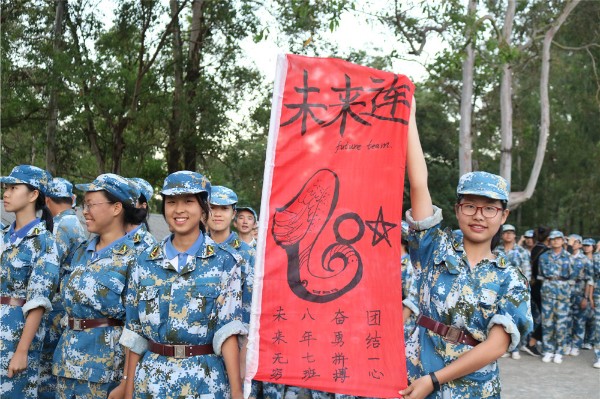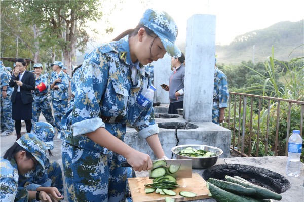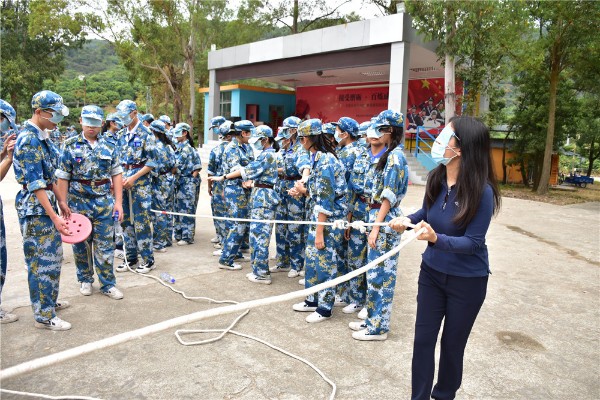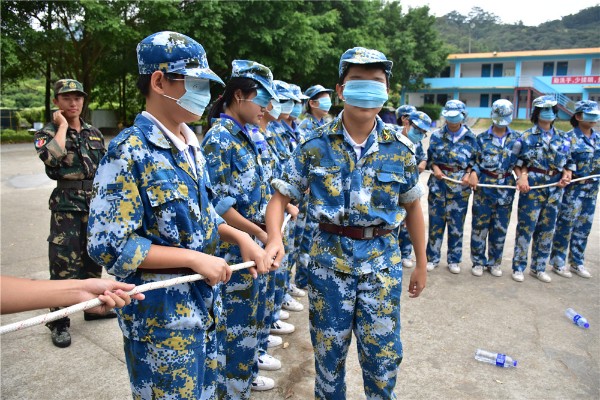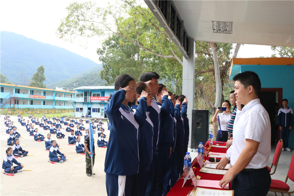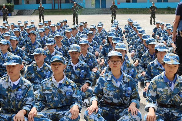 9日上午八时,师生整装出发。一个小时后,顺利抵达基地。稍作整顿后,同学们换上统一的迷彩服参加了开营仪式。
