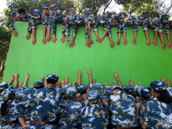15日的拓展活动更加精彩纷呈。“鼓舞飞扬”活动中,大家全神贯注,小心发力,坚持不懈,让飞舞跳动的排球个数不断增加。在“挑战NO.1”活动中,同学们协同合作,默契配合,认真完成各自的项目,让团队越来越有凝聚力,越来越强大。“盲人方阵”让同学们发挥出集体智慧,遇到困难不放弃,不断摸索,努力前行。