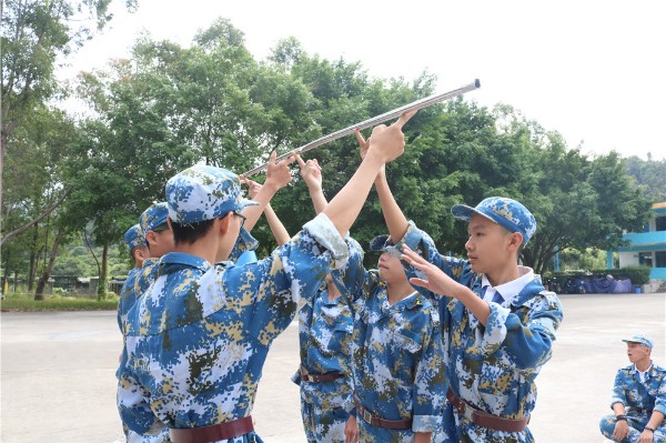 接下来的几天里,每日清晨六点许,同学们便已洗漱、整理内务完毕并开始了晨练。队列训练、齐步摆臂练习、正步训练、啦啦操、旗语操、军体拳、唱军歌……丰富多样且严格规范的训练,不仅磨砺了七八年级同学们的意志力,同时也凝练了团队的合作精神,短短几天内,各班塑造了强烈的班级团队荣誉感。