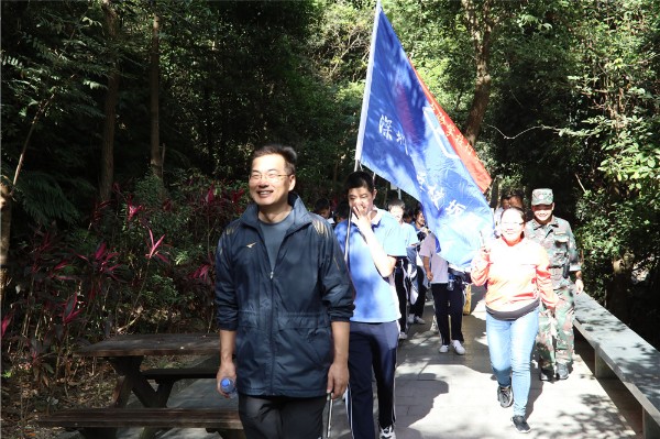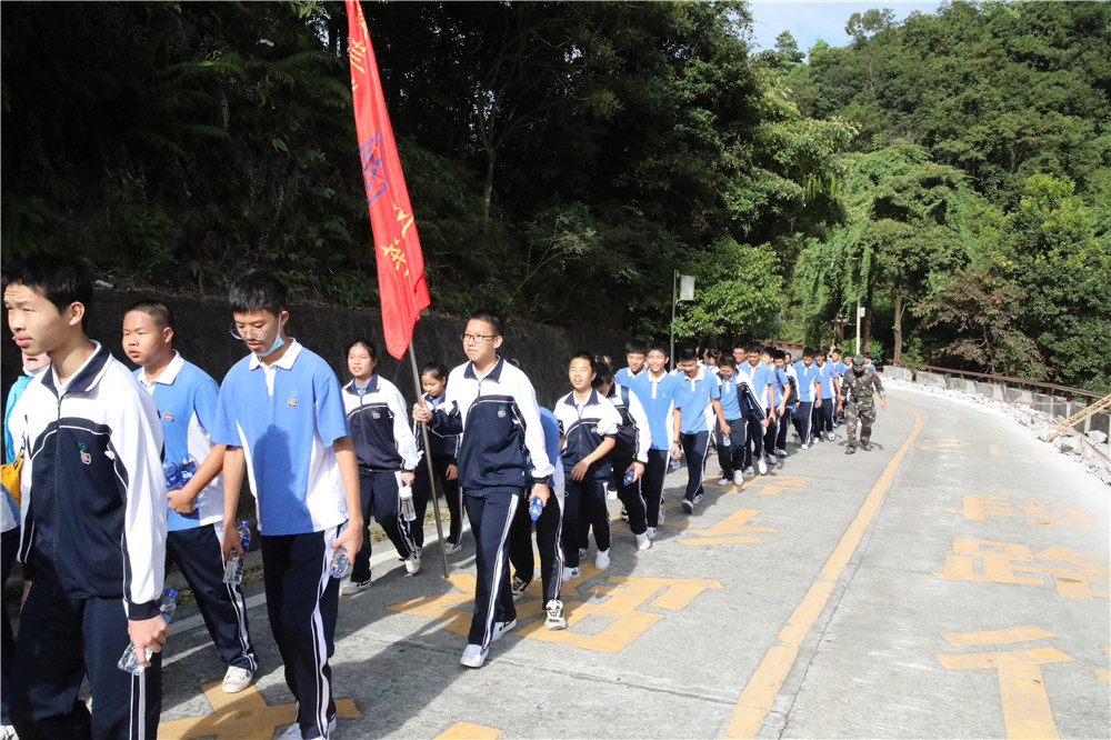 11月14日上午,坂田部九年级全体师生到达东方阳光银瓶山拓展基地。授旗仪式后,九年级师生饱含激情踏上了登山拉练的征程。