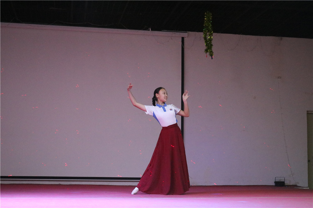12日晚,七八年级举行了军营联欢晚会,各班同学充分利用晚会舞台,以多样的形式展示自己的才华。