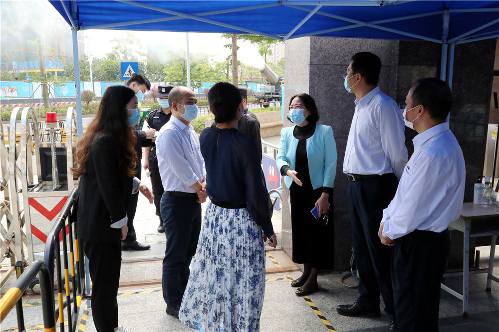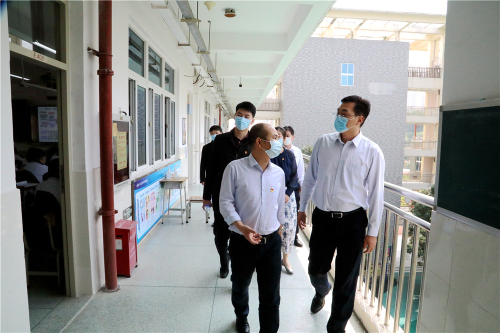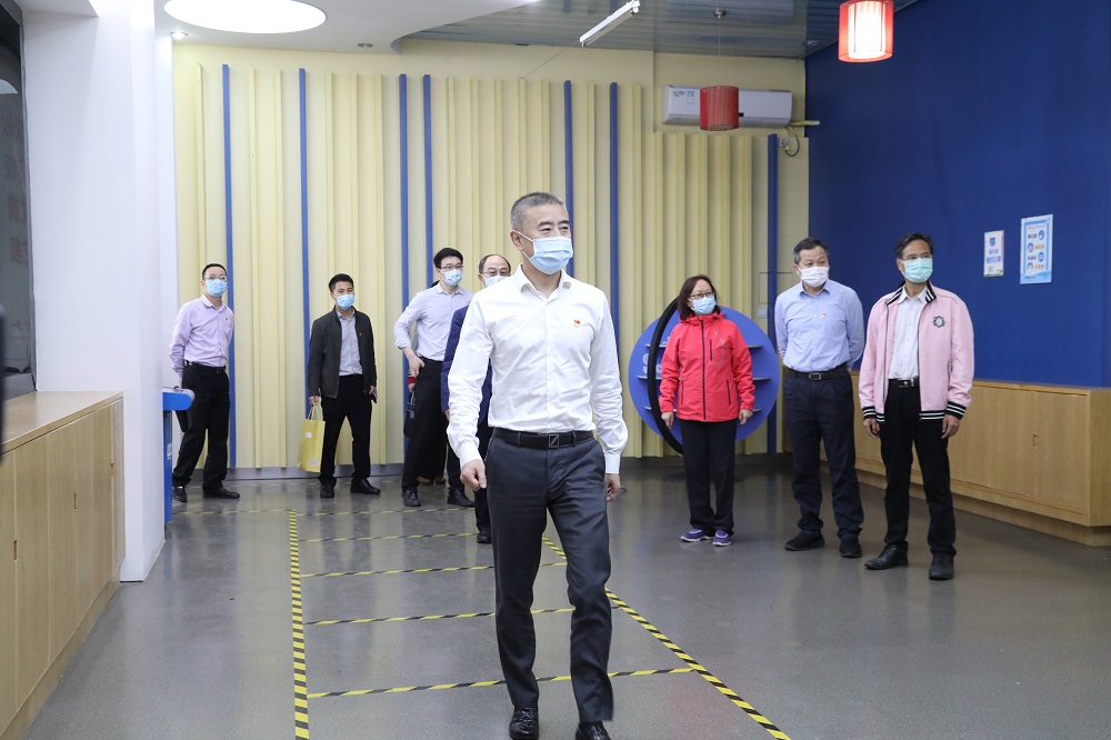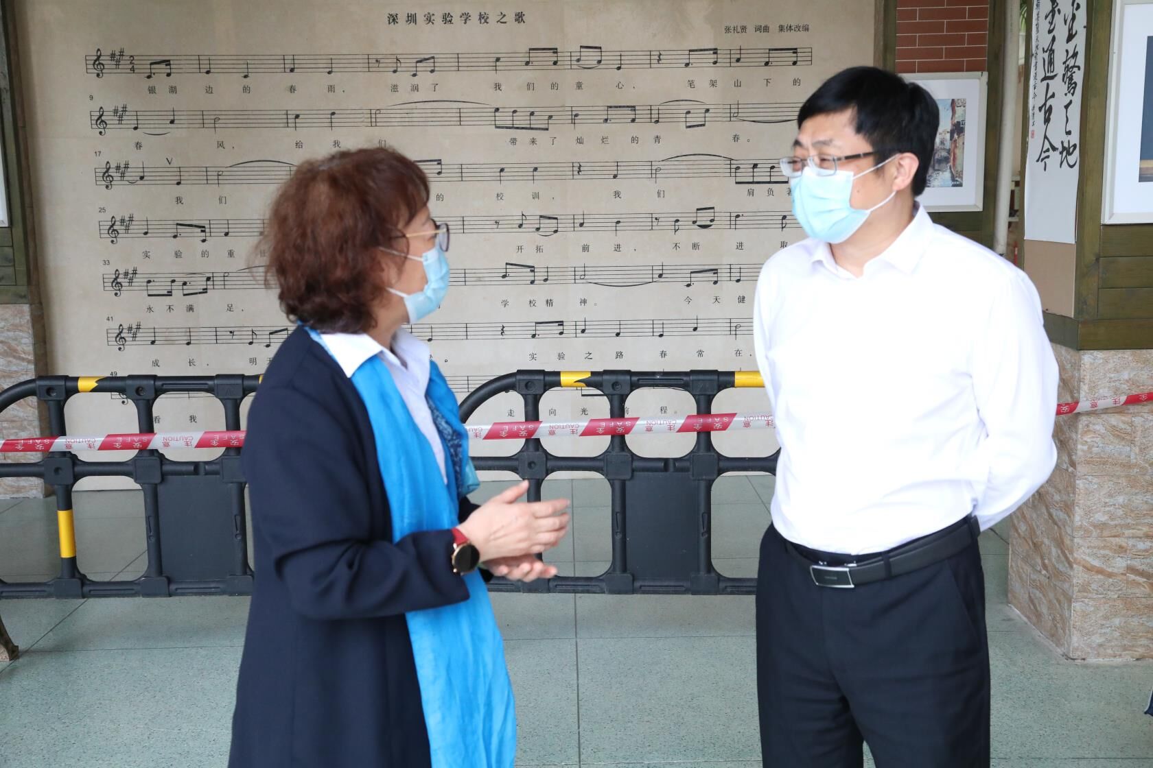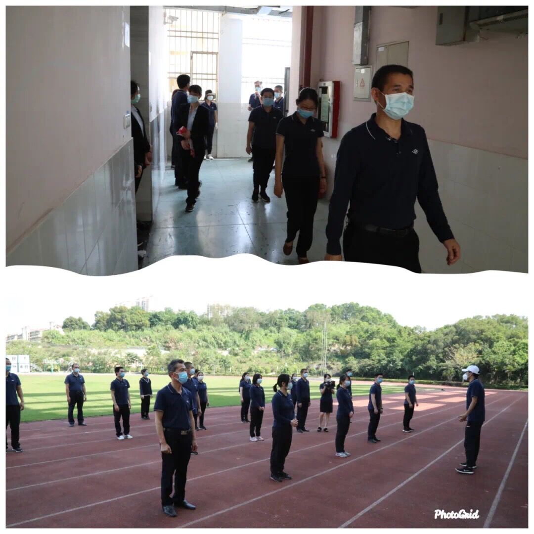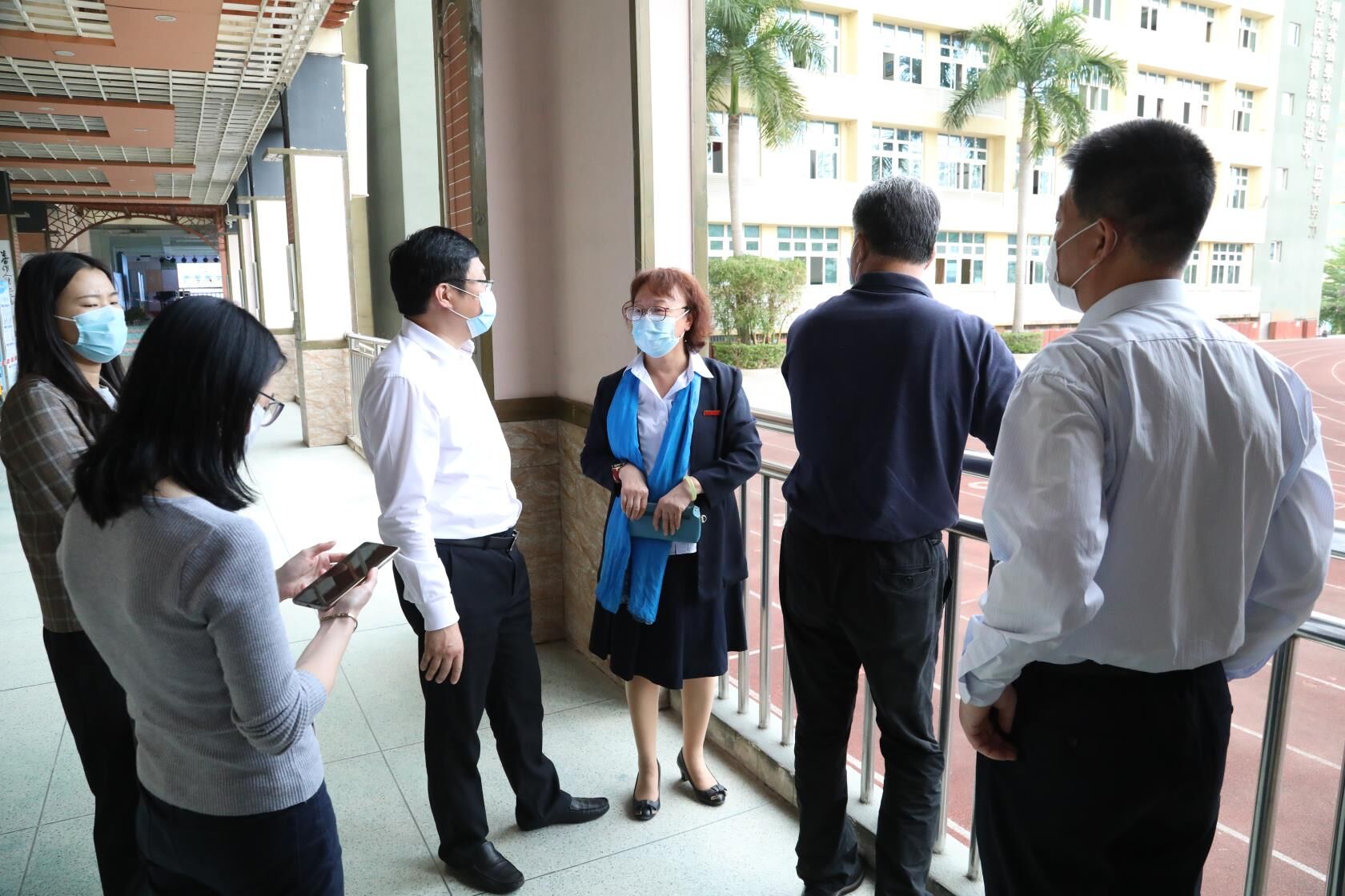 4月23日,深圳市监委委员李丁文率队到坂田部检查调研新冠肺炎疫情防控工作和学生返校复课准备情况,衷敬高校长陪同调研。