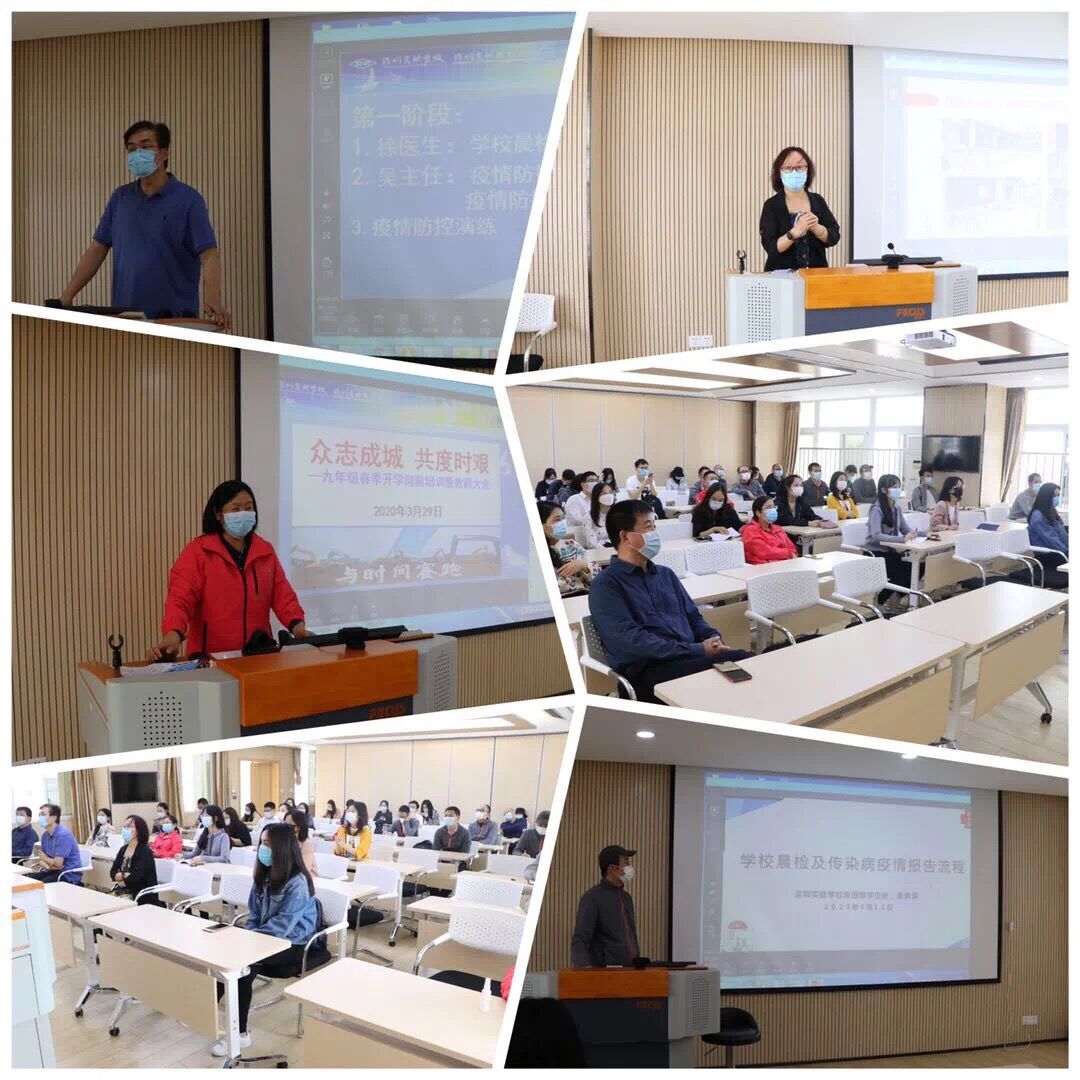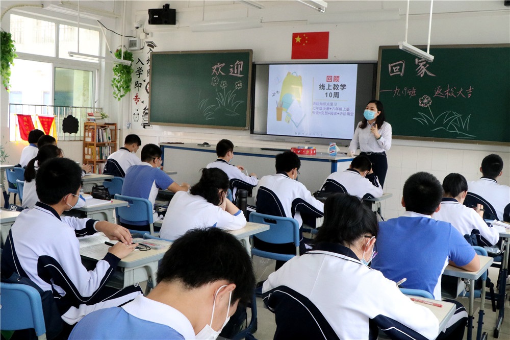 ▲ 九年级两次召开教师培训会,为线上教学和返校学习有效衔接做准备,确保毕业班师生以积极饱满的状态全力冲刺中考。