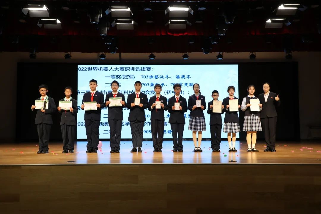 活动中,学生获得了更多展现才华的机会,在体验科技活动的乐趣中,在感受科学知识的魅力中,培养了探索精神、创新精神和实践能力。闭幕式上,在精彩的节目中,师生一起回味和总结了一周的欢乐与成长,并隆重表彰了在科技节活动与省市各类科创竞赛中获奖同学与团队。