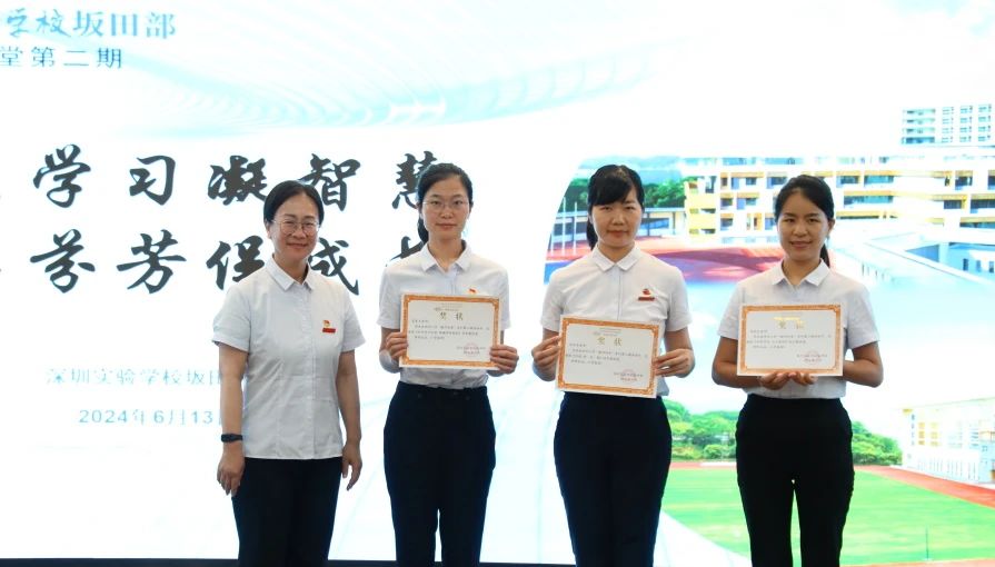 采撷归来,共享芬芳。教务处温荫明主任对分享内容进行了总结点评,从“共享”、“思想”、“方向”三方面呼吁老师们不断学习,不断思考,不断实践。从四位老师的分享中真切感受到一所所优秀的学校正在用实际行动践行新课标的理念,他们用丰富的活动、隐性的文化不断提升学校的软实力,在课堂、课程和文化的建设上不断实践看见儿童生长的新教育理念。外出学习老师们除了自身的反思与蜕变,更有方法的传递,理念的更新、思想的指引。最后坂田部执行校长张楠为参与分享的老师们颁发了荣誉证书。