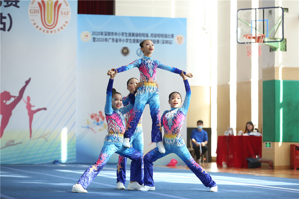 由广东省教育厅、深圳市教育局主办的2020年深圳市中小学生健美操啦啦操、班级啦啦操比赛暨2020年广东省中小学生健美操啦啦操联赛(深圳站)12月8日在深圳市平冈中学举行。坂田部健美操队以8.5分的高分荣获广东省学生健美操规定动作一级套路小学组第一名!