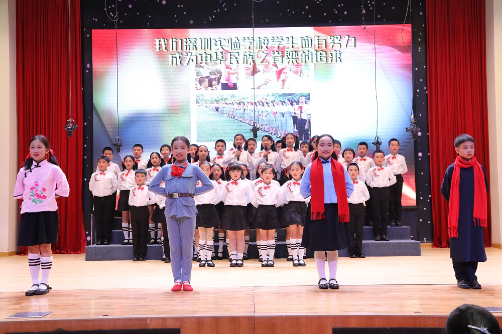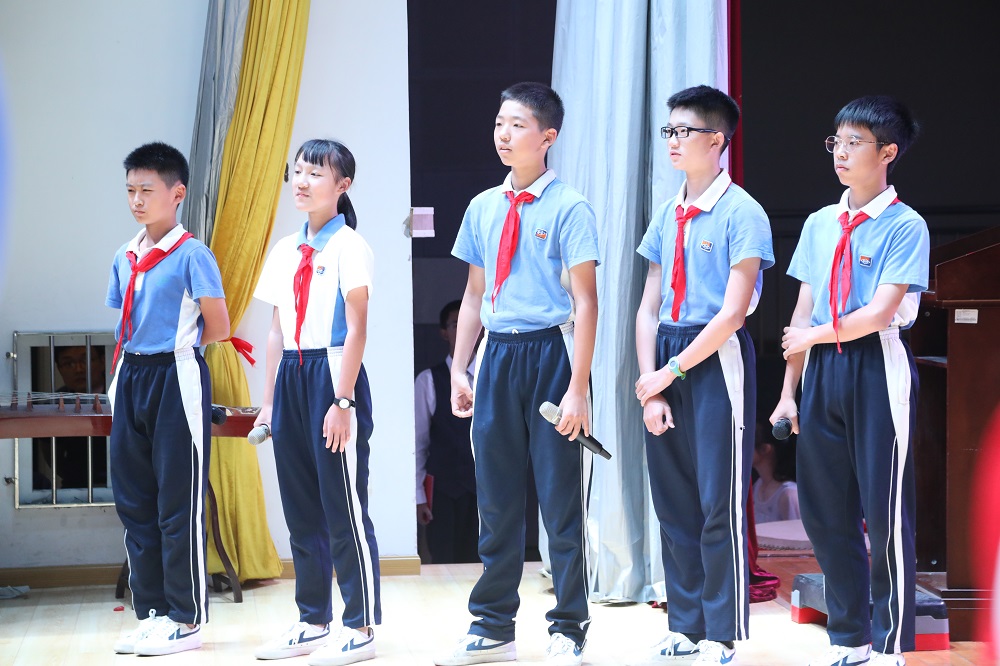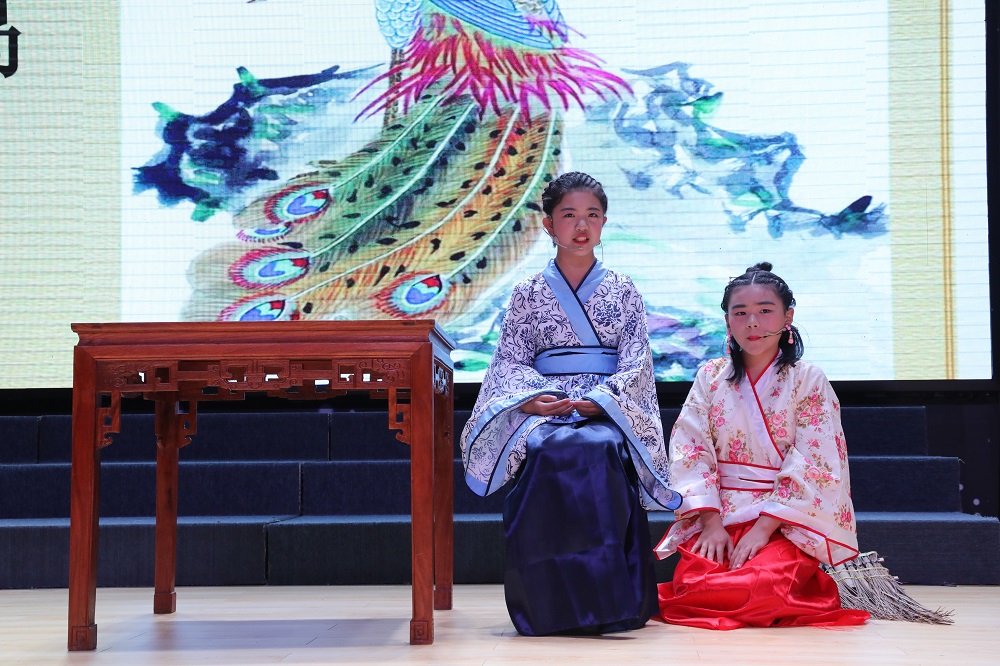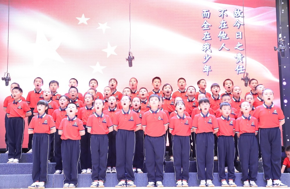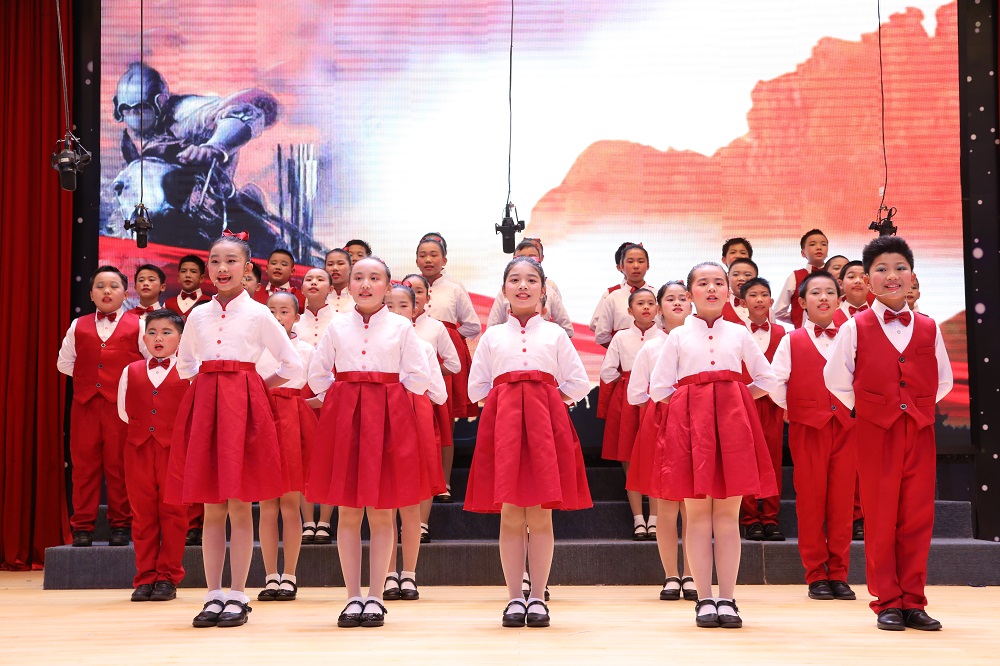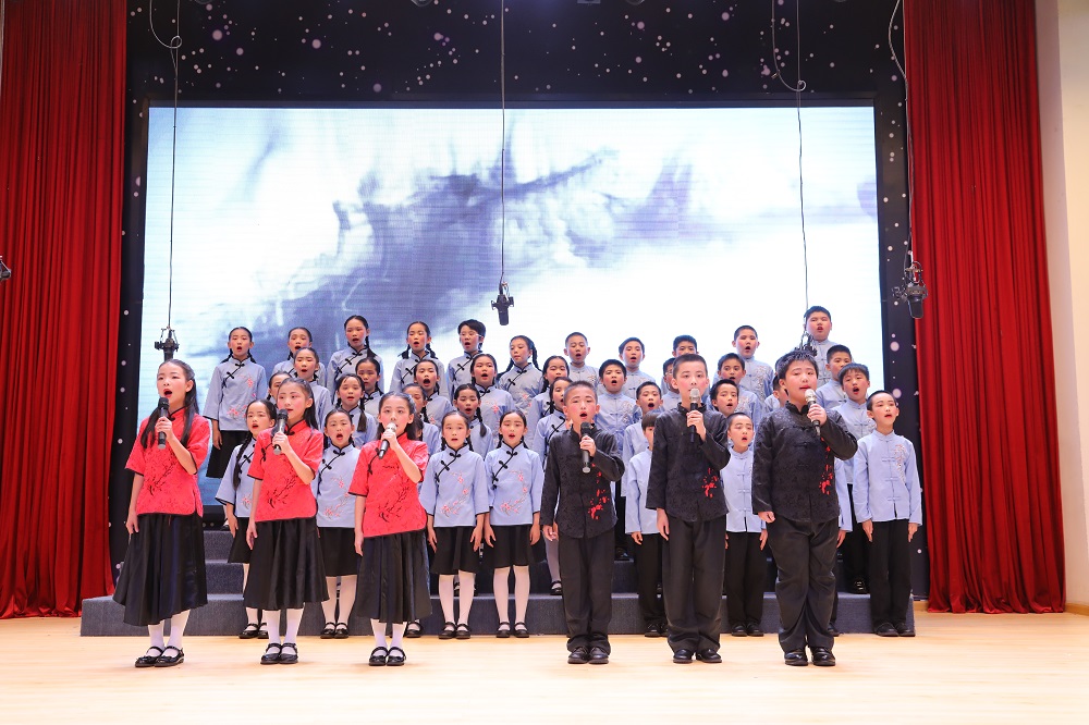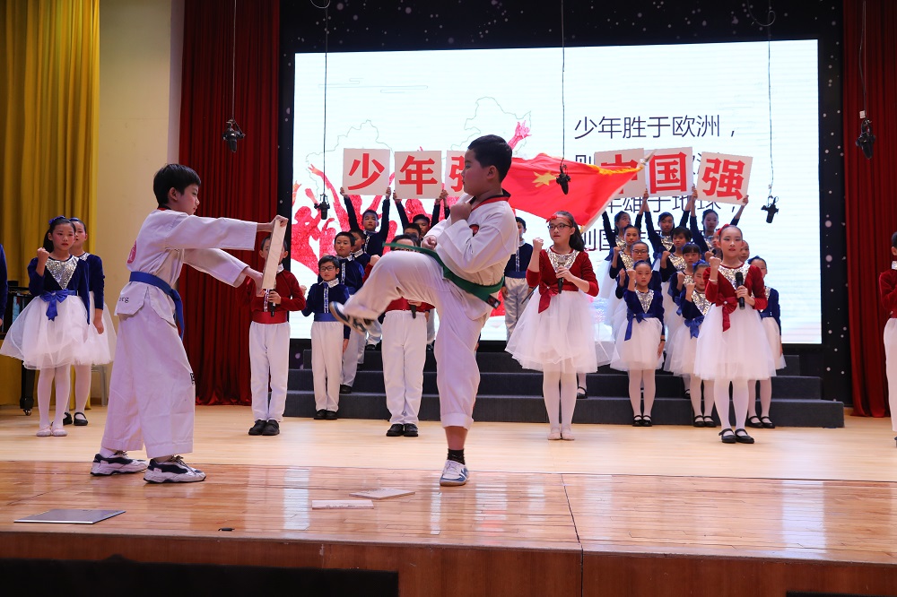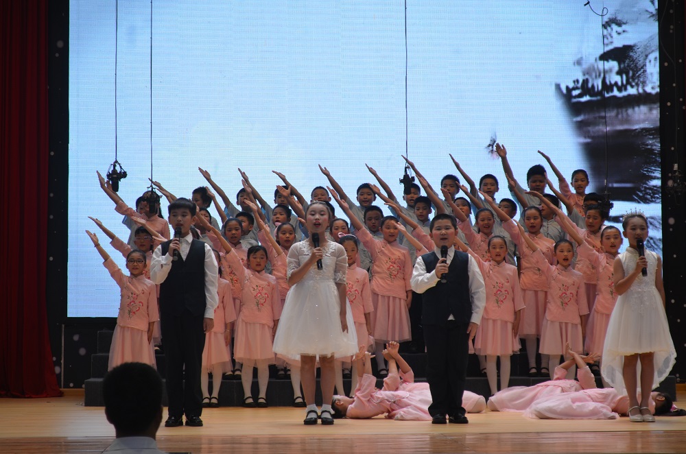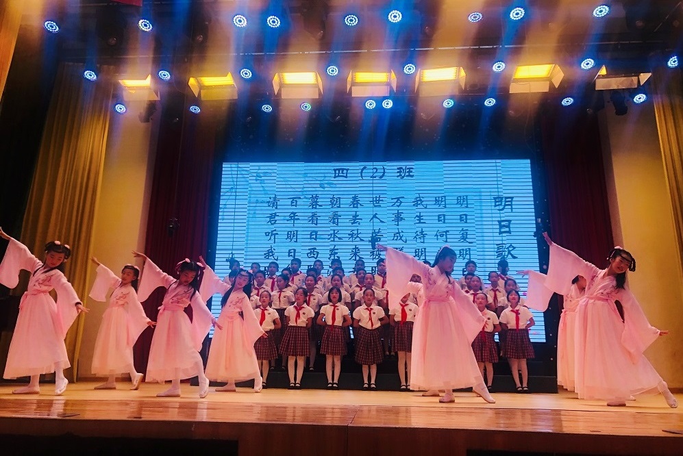 四年级的同学们用唯美绝妙的中国话将祖国赞颂,用诗文表演的方式把道理讲述,用精彩的表演点燃对祖国母亲的热爱。那殷红的杜鹃犹记踏过荆棘时的从容,少年梦想的征程需要风雨的历练,同学们用激情朗诵宣告,他们正是新一代的中华少年。