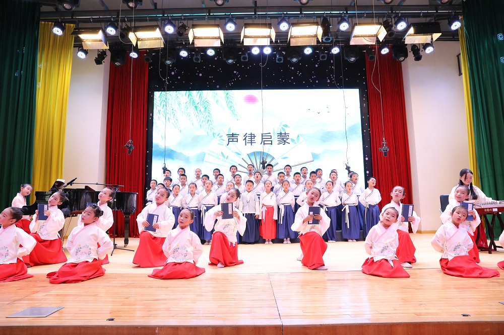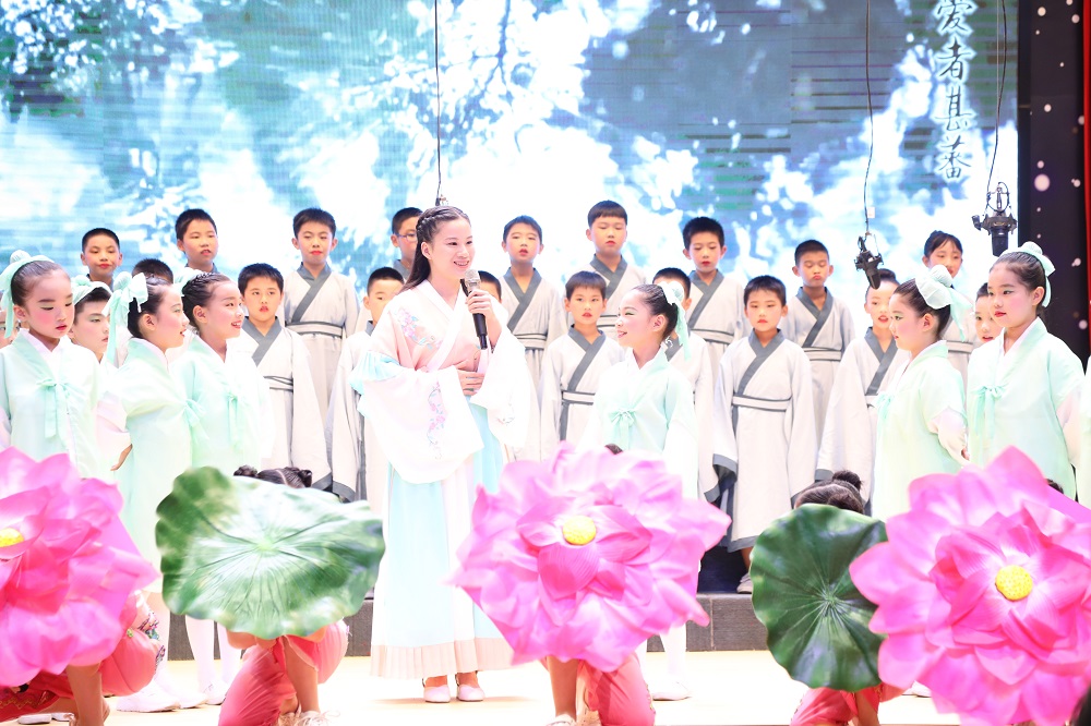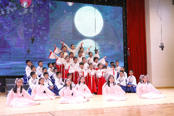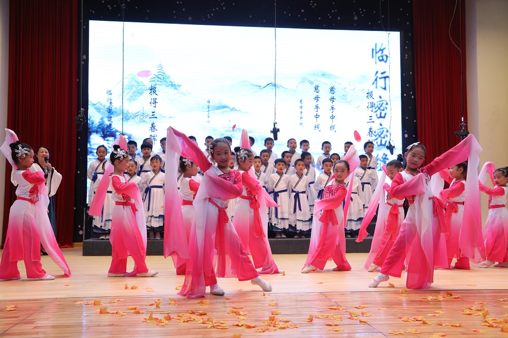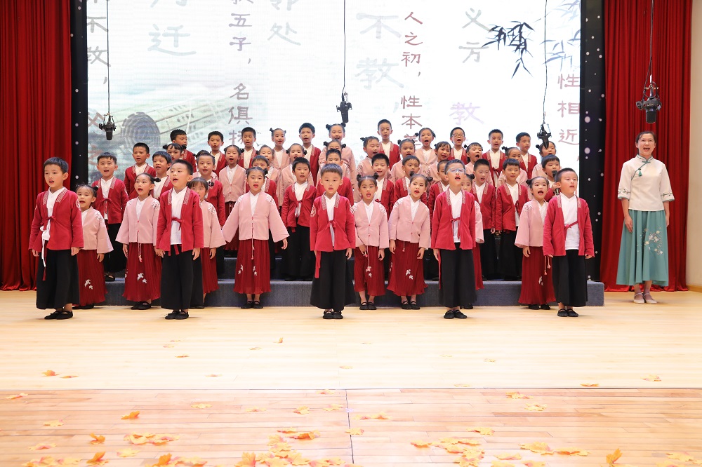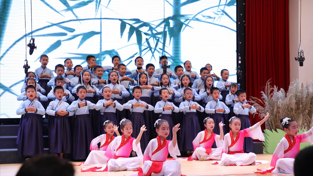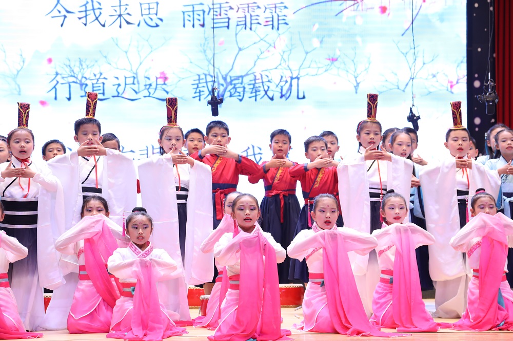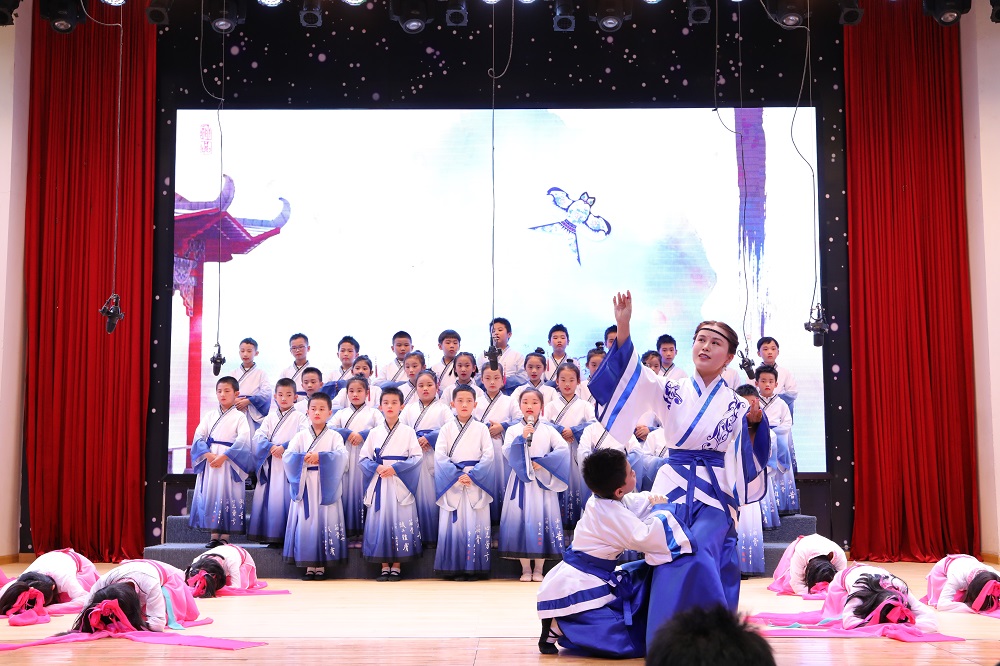 三年级学生们全身心投入,通过古诗吟诵、古诗新唱、集体诵读与音乐、舞蹈等相结合的形式,让表演活泼灵动,多角度演绎了中华经典国学,展示了中华经典美文的独特魅力和蓬勃朝气!诗的语言,典藏着五千年悠久的历史文化;诗的声音,演绎着不朽历史的风骨铿锵。诵读经典,让阅读成为习惯,使书香飘溢校园;感悟经典,将传统文化的种子播撒在我们的心田。