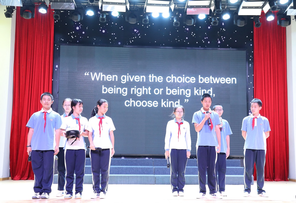 六年级各班带来了五个精彩的节目。每个节目在忠于原著的基础上,进行了大胆、有意义的创意改编,让观众在重温经典的同时,眼前一亮;在开怀一笑的同时,受到启发。