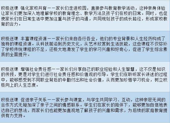 家校携手,共育未来的愿景,在“实验家长讲堂”这一别开生面的活动中得到了生动诠释。这不仅仅是一场场知识与智慧的碰撞,更是家校之间情感与责任的紧密相连。