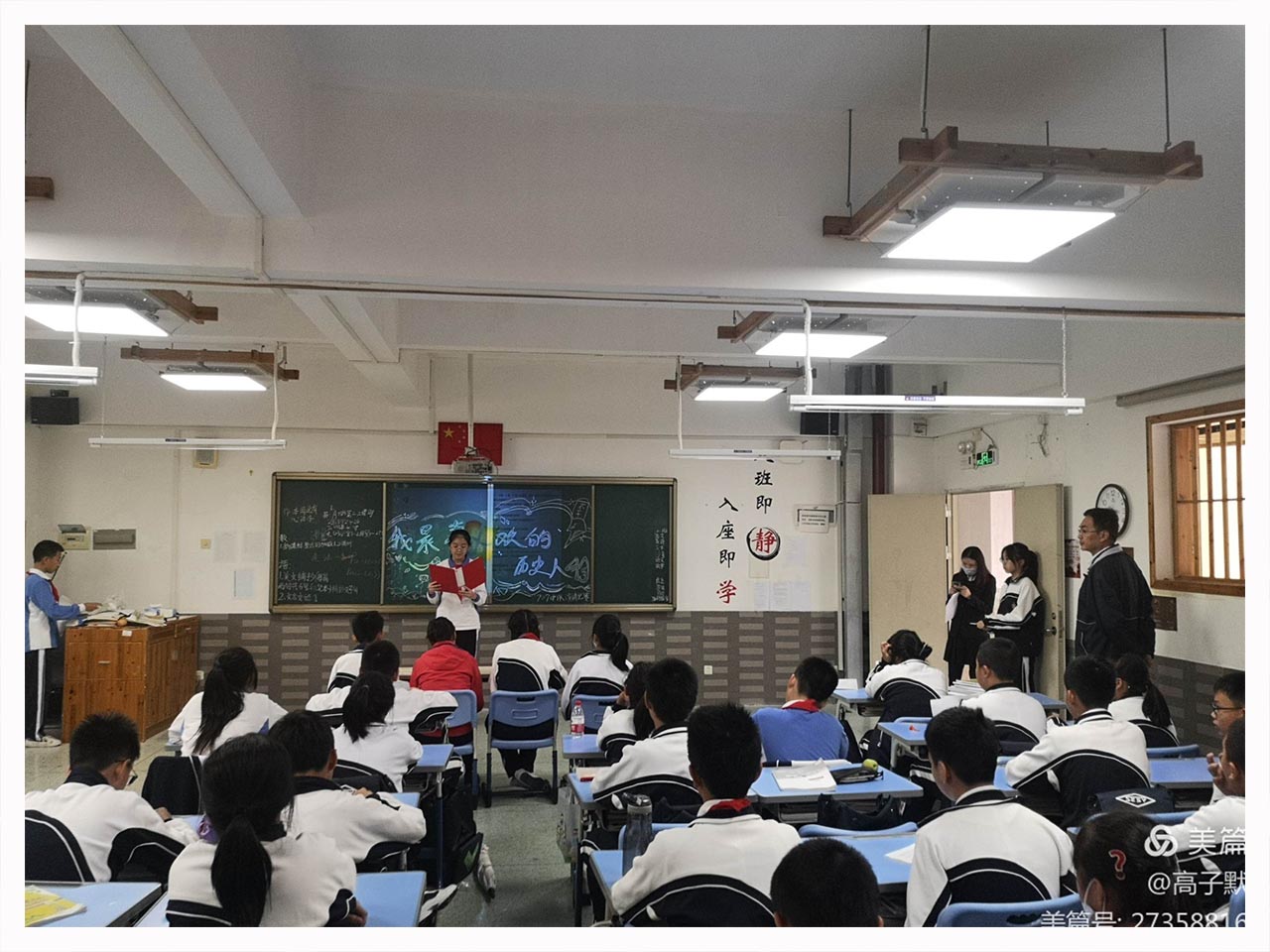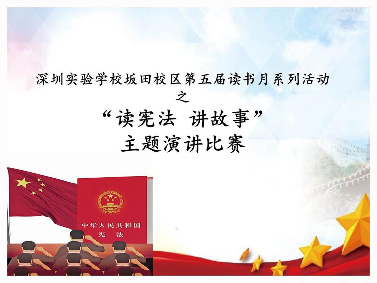 在“读书月”闭幕式晨会中,七(2)班同学带来名著新编话剧表演《半条被子》,坂田校区初中部隆重地为配音比赛获奖班级及“阅读之星”“书香家庭”“书香班级”获得者颁奖。
