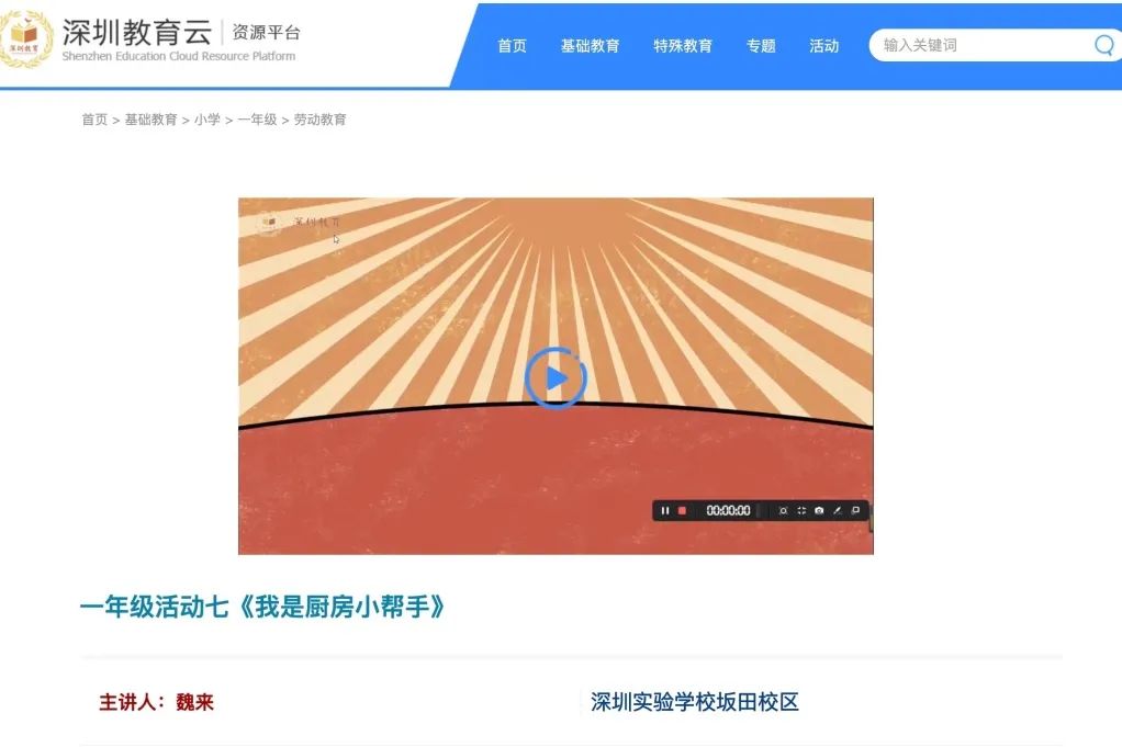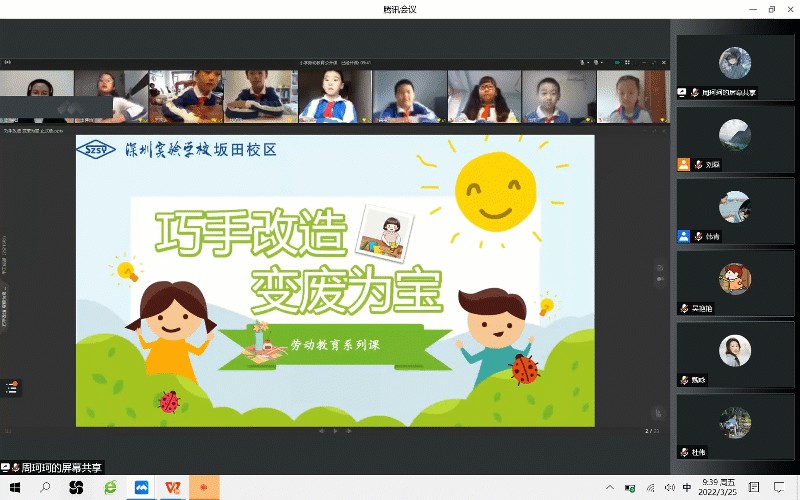 3月25日上午,由深圳市教育科学研究院主办、深圳实验学校坂田校区承办的深圳市小学劳动教育“名师在线”公开课活动(第一场)拉开帷幕。这是深圳市今年疫情以来第一次劳动教育在线集体教研活动,由坂田校区小学部提供线上劳动展示课和在线经验分享,讲述实验的劳动教育在坂田发生的故事,传递出实验的好声音。