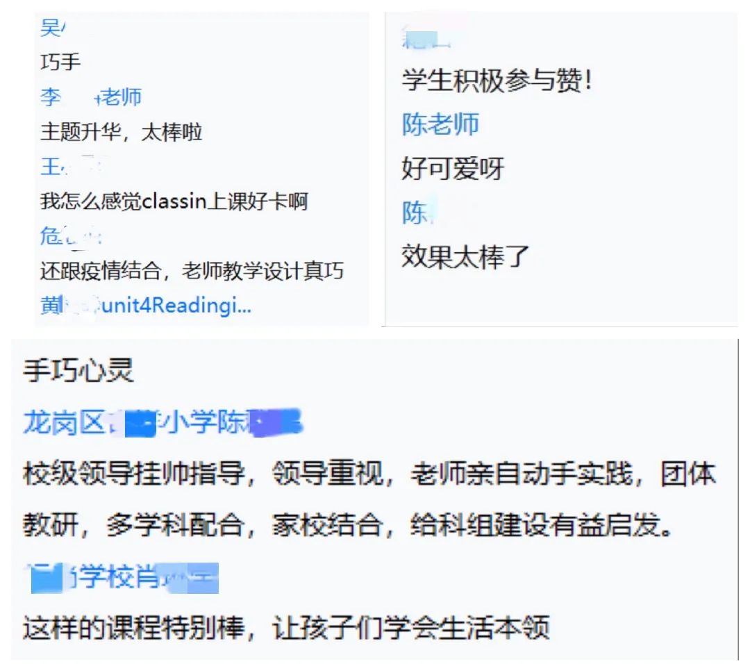 许多的老师都纷纷留言或是来电索要课件和视频(均已公开共享),一些已经荣休的实验老领导和老教师都在关注点赞,还有一些省内外的学校自行录制视频准备在以后的教师培训中播放学习。