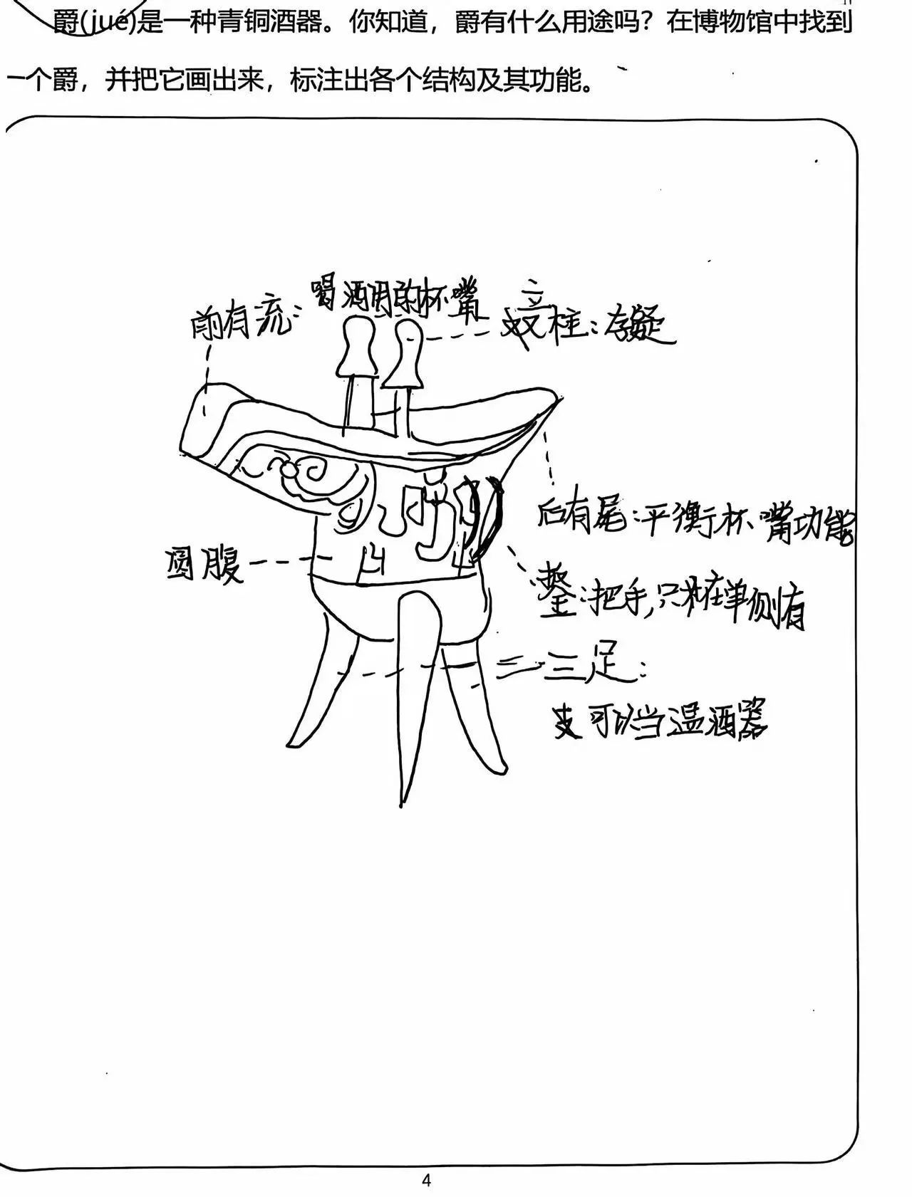 学生们以事先分好的小组为单位,围绕青铜器展开任务合作,将语文、数学、艺术、科学等多个学科的知识巧妙地融合在一起,共同探寻着青铜器的奥秘。在任务的驱动下,学生们充分展现了他们的团队协作精神和创新能力,他们或查阅资料,或记录观察,或展开想象。这一过程不仅深化了同学们对历史文化知识的理解,更在实践中锻炼了他们的沟通能力、协作能力和问题解决能力。