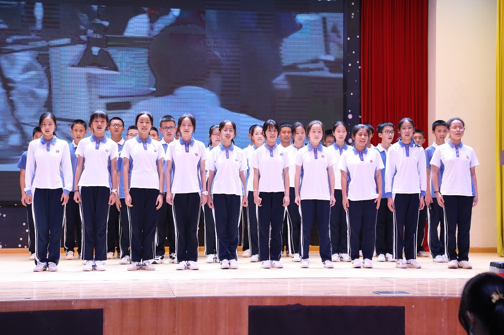 “1921,壮丽篇章开启,自强不息,一定能够创造奇迹,每次受挫都是一次收获,勇往直前是我的选择。”2021年恰逢建党百年,一曲建党百年主题MV《少年》拉开了大会的序幕。各班代表表演的情境剧《少年》展现了当代少年不忘初心,勇担使命的风采。深圳实验学校师生应有努力成为中华民族脊梁的追求,2021届实验学子,将追求卓越,永不满足。