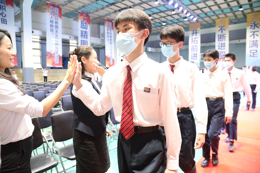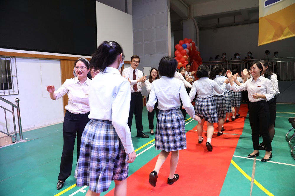 最后,在老师们的击掌加油中,同学们带着自信的微笑、嘹亮的声音、昂扬的斗志、雄健的步伐,拿出中考必胜的决心和信心,向中考大捷的成功之门迈进!