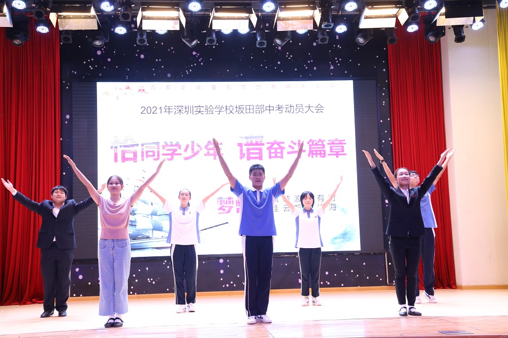 青春因奋斗而精彩,梦想因拼搏而绚烂。3月17日,坂田部2021届九年级中考动员大会在文体馆隆重举行。学部主要领导及部分家长代表出席了动员大会。大会由年级主任李虹老师主持。
