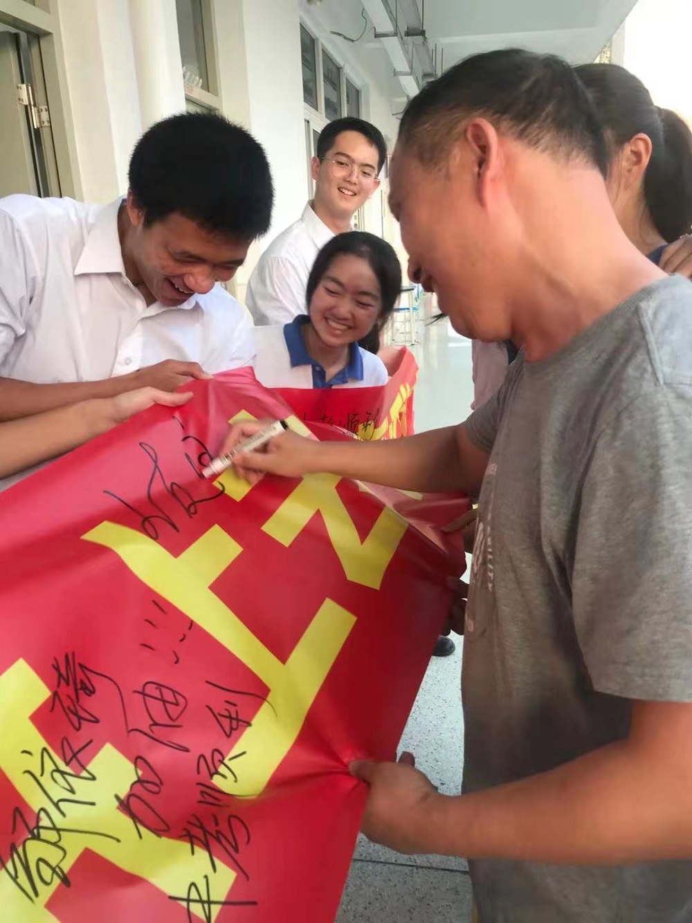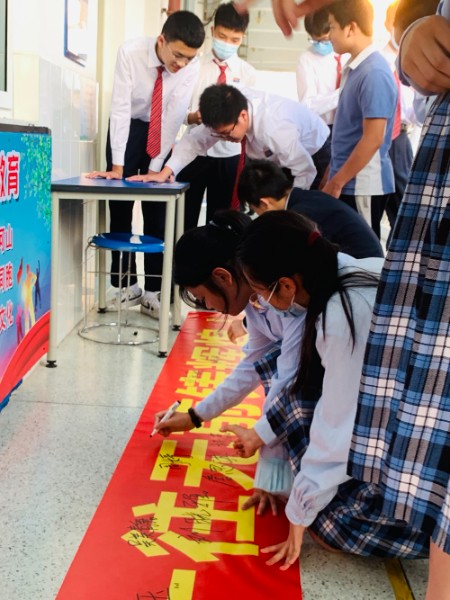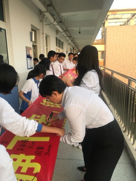 回到各班教室,同学们又在标语条幅上庄严签名,互相加油打气,现场热情澎湃,斗志昂扬!
