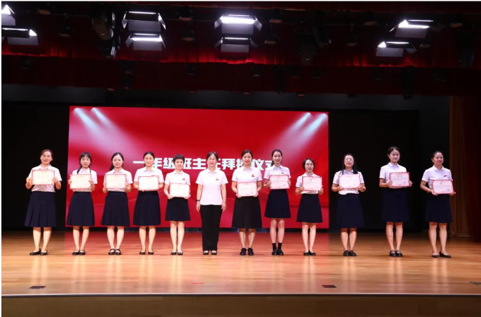 张楠校长、多位校领导及一年级教师团队出席会议,会上通过视频展示学校风采,并举行教师拜授仪式。