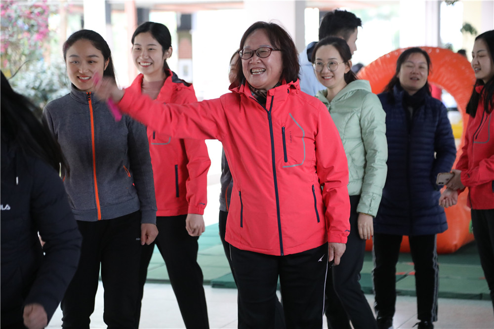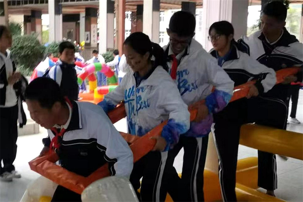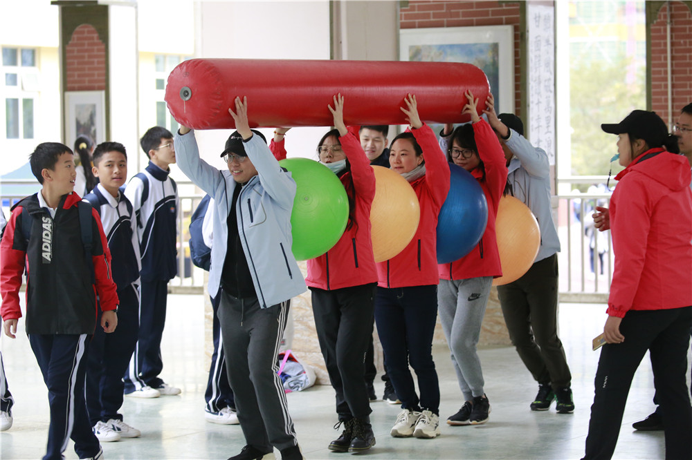 在教师趣味运动比赛中,平日有些严谨严肃的老师们走向赛场,活力绽放,织成了一道道靓丽的风景线。