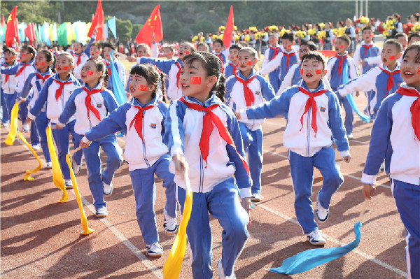 七、九年级带来的《国家》手语操表演和由五(1)班、六(2)班、七(6)班以及坂田部健美操队带来的健美操表演将开幕式的气氛推向高潮。最后,二至六年级的活力操表演为开幕式划上了圆满的句号。