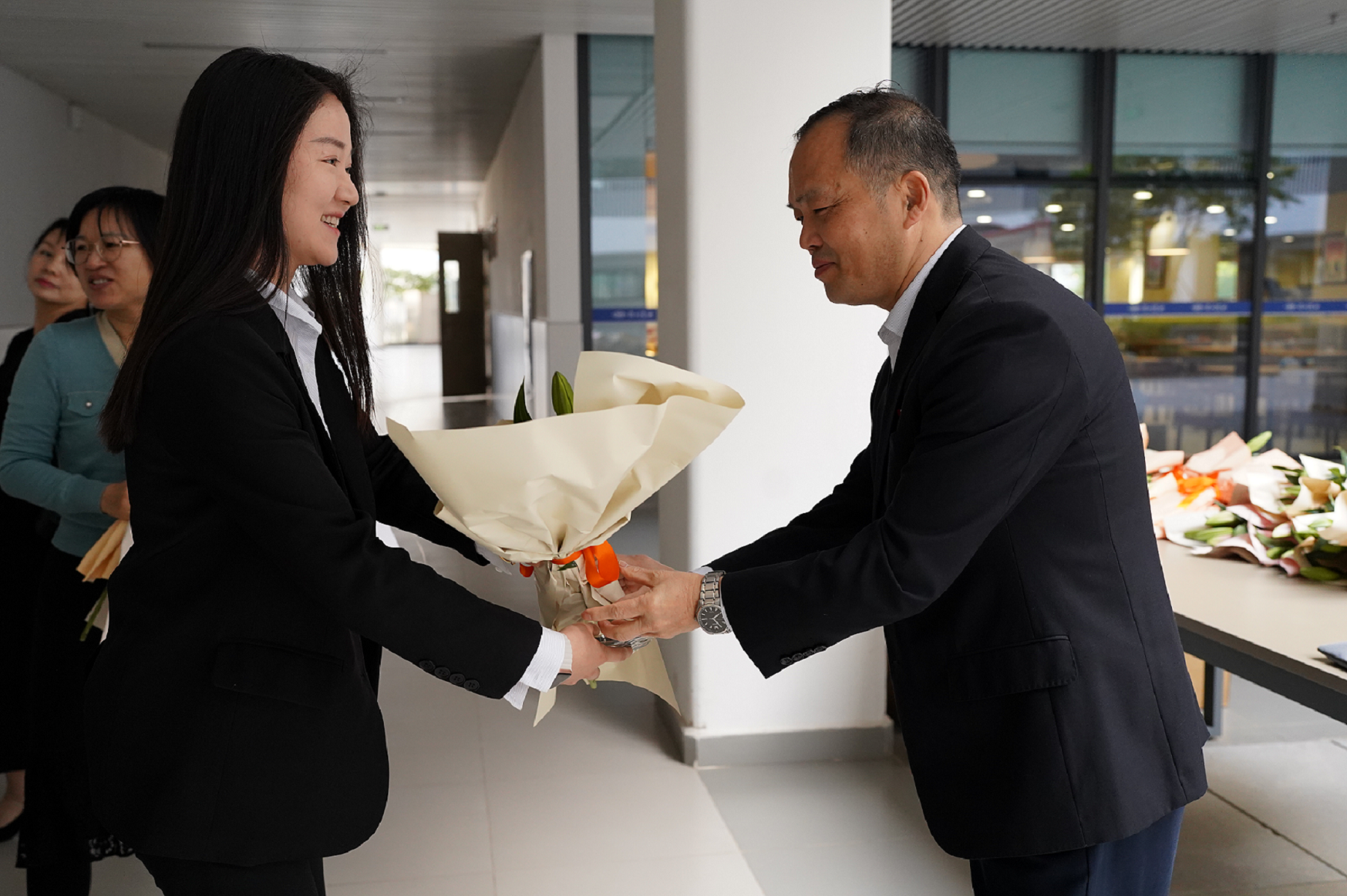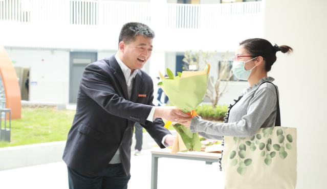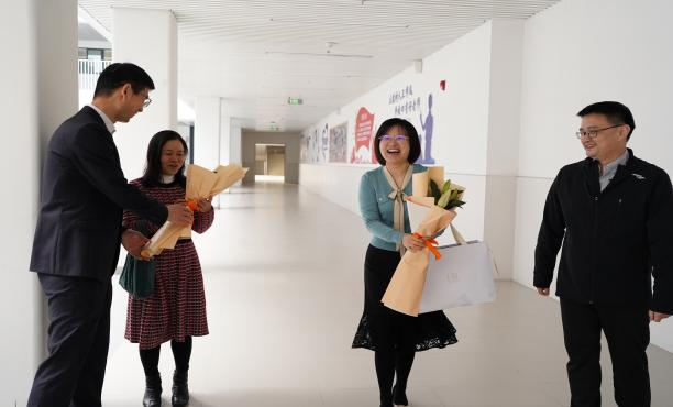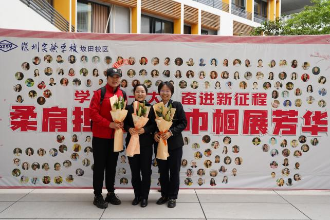 献花致敬“她力量”。为了全面展现女教工在学校教书育人岗位上的风采,坂田部党总支联合工会、妇委会收集了全校180多位女教工的照片,设计了“三八”妇女节主题活动展板,准备了象征高雅纯洁的百合花。节日当天,深圳实验学校副校长、坂田部党总支书记、执行校长王喜峰同志带领行政团队为女教工们献花。