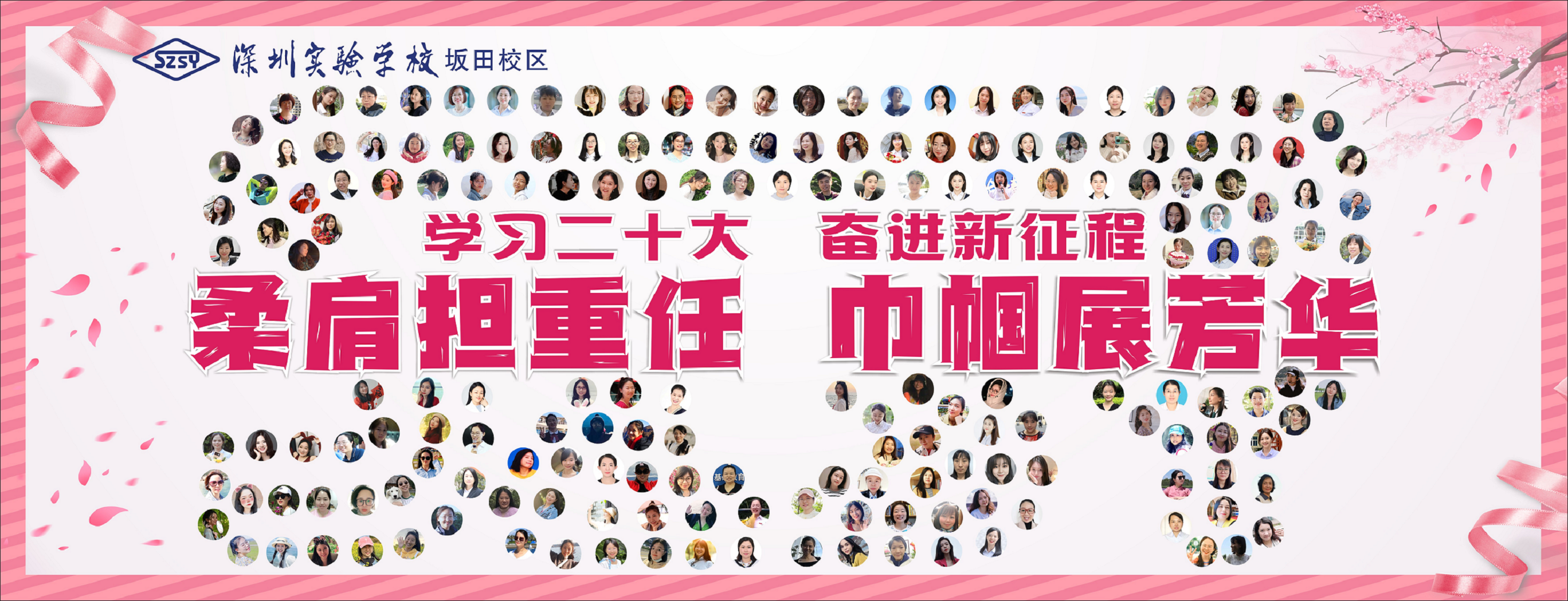 芬芳三月,百花飘香。在践行二十大的开局之春,深圳实验学校坂田部党总支为深入学习宣传贯彻党的二十大精神,纪念第113个“三八”国际劳动妇女节,团结引领广大妇女群众坚定信心,积极投身教育教学的火热实践,全面展现女性在推动学校发展中建功立业的巾帼风采,开展了“学习二十大,奋进新征程”系列活动之“柔肩担重任 巾帼展芳华”主题活动。