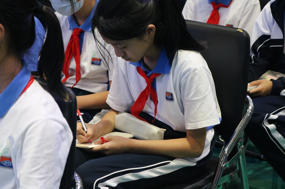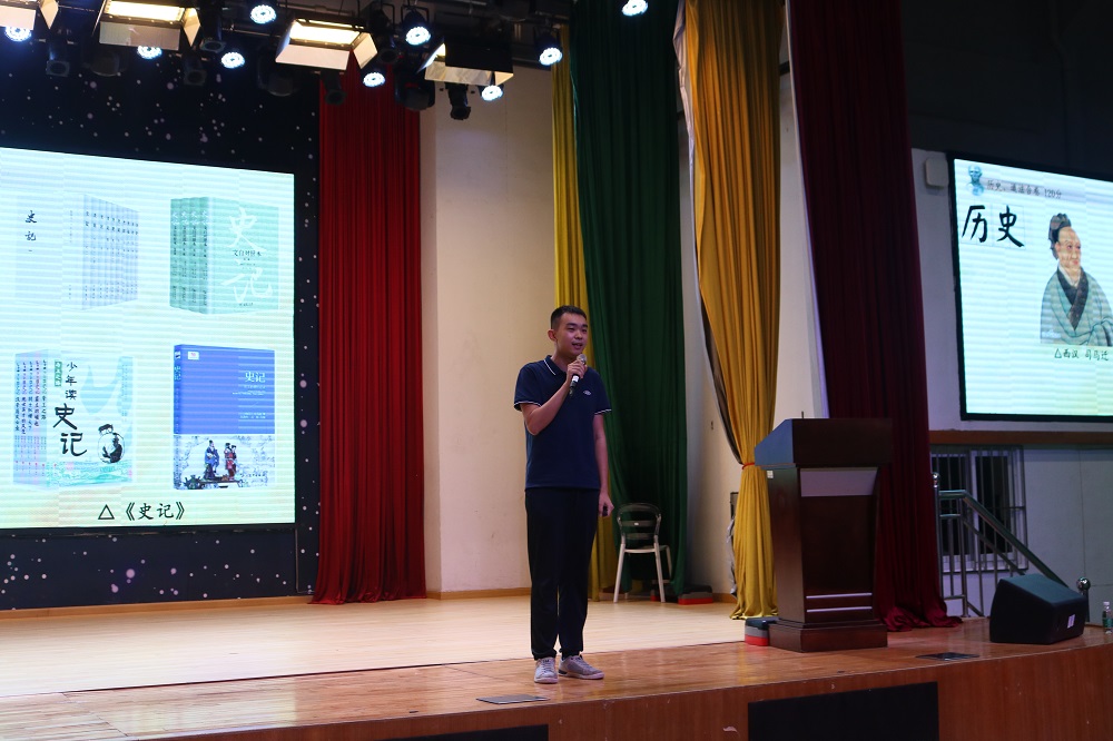 高子默老师引用司马迁写《史记》的典故为七年级新生介绍了历史、道德与法治学科的重要性及意义。高老师说到,历史是观古鉴今的科目,而道德与法治则是培养合格公民的学科。他要求同学们在日常的学习中应做好预习、听课、复习三个方面,包括以工整的书写完成日常作业。