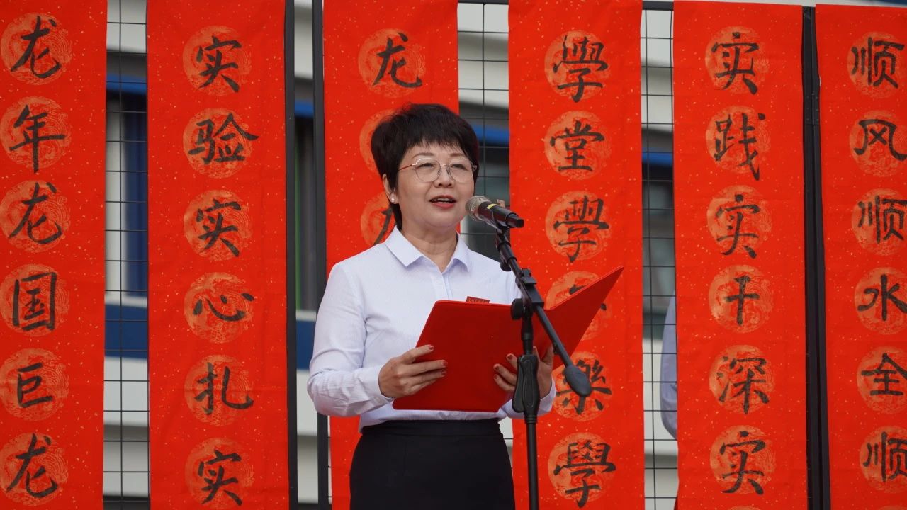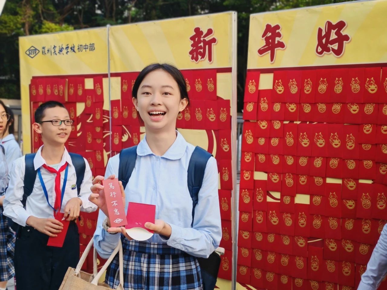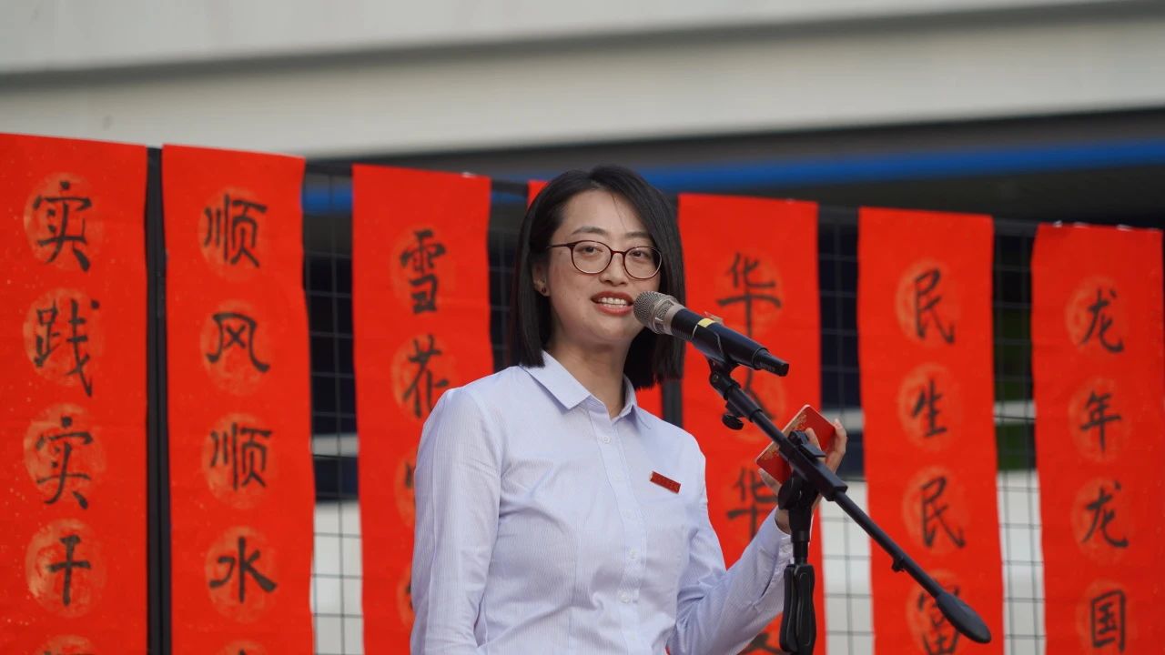 开学典礼上,李笑梅执行校长作《龙行实干启新程》主题演讲;“实验实心扎实写鸿篇”、“鹏图鹏城云鹏展雄姿”、“华人华夏中华展宏图”、“顺风顺水全顺占鳌头”等一幅幅寓意深远、创意独特的春联作品由学生书写并展示出来,学生、教师和家长代表上台分享创作春联的灵感和过程,激发全体师生对传统文化的热爱和传承之情。