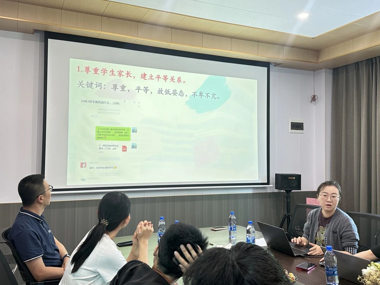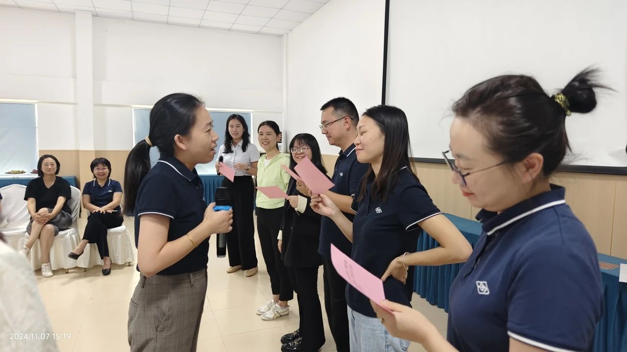 接下来的“沟通的艺术:搭建心灵桥梁”环节,初一年级冯琪玮主任深入讲解了班主任与学生、家长、同事及领导沟通的技巧,分享了丰富的实操经验和典型案例。