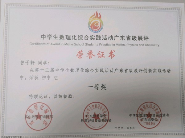 “中学生数理化综合实践活动”是一项展示青少年数理化学习能力的综合性活动。该活动秉承“落实新课改精神、提倡研究性学习、鼓励创新与实践”的宗旨,重在激发青少年对学科能力的探究和创新能力的培养。为开拓学生视野,增强学生实践能力,让创新型青少年人才脱颖而出,初中部积极组织学生报名参加5月14-16日在广州市举办的省级初评活动。