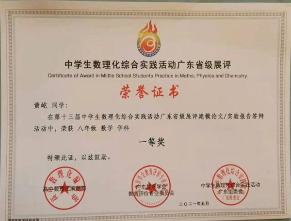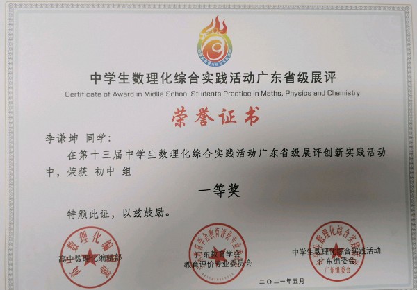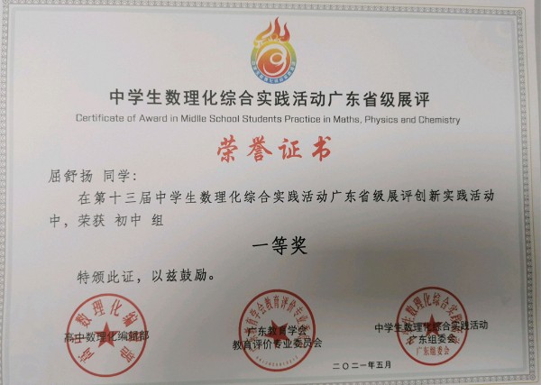 初中部学子在广东省第十三届中学生数理化综合实践活动中再创佳绩