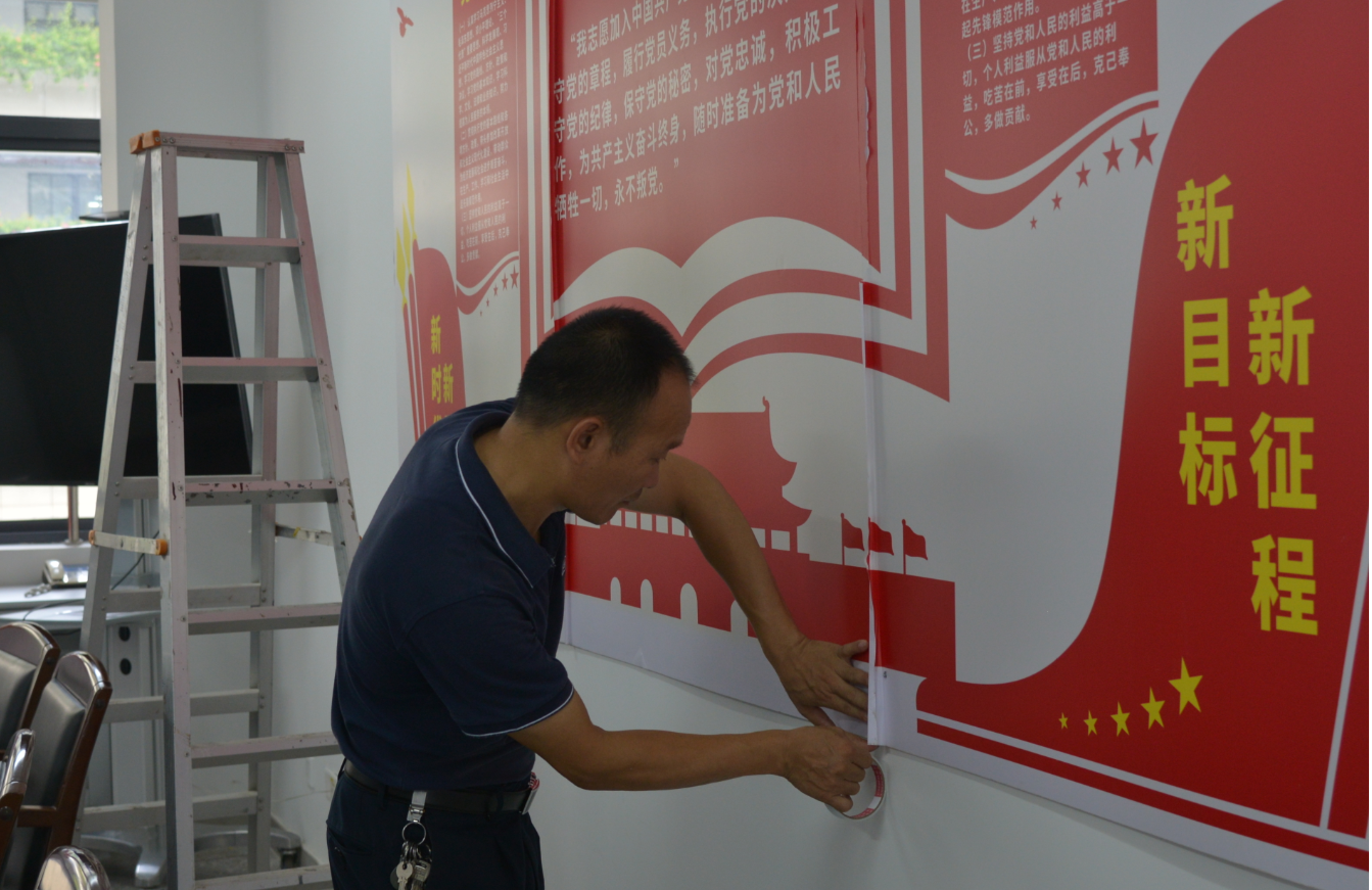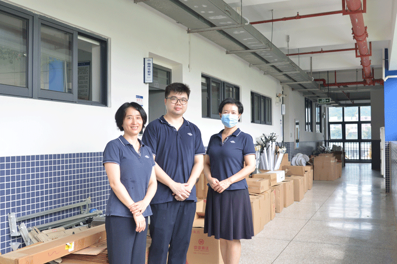 搬迁路上,党旗飘扬,党徽闪耀。初中部党支部书记邓旭副校长和支部委员多次到现场指导、参与工作,给大家加油打气;各部门党员干部带头勇担当,发挥无声的先锋模范作用,让党旗在繁重的搬迁工作中高高飘扬。此次搬迁,初中部除了搬家公司出车,没有另外聘请临时工,搬迁人力全部由本校教工和物业员工组成。他们可爱可敬,搬迁过程中有人砸到脚、划破手;有人颈椎病发作晕倒;有人累到腰直不起来;有人每天高强度操心而导致失眠……却没有人叫一声苦,喊一声累。在他们身上彰显着不怕脏、不怕苦、不怕累、团结奋斗的实干精神。为了不影响新学期开学,搬迁同时,总务处对西楼校舍进行了局部优化改造——办公室、教室、功能室及餐厅的布置及清洁卫生等,还组织专业人员在暑期细化流程提效率,加班加点赶工期,保证了设备齐全、安全实用、美观整洁、高度智能的新校舍如期呈现在全体师生面前。看到金色的阳光透过蓝天,洒在蓝白相间的新校舍时,全体师生无不为之骄傲和自豪。汗水浇筑的校园新貌,凝聚了实验人爱校建校、以校为家的高度责任心和荣誉感!